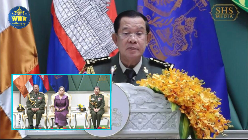 ប្រមុខរដ្ឋស្ដីទី សម្ដេចតេជោ ហ៊ុន សែន បំពាក់ឋានន្តរសក្តិ ថ្នាក់នាយឧត្តមសេនីយ៍ផុតលេខផ្កាយមាស៥ ជូនសម្ដេច ទៀ បាញ់ និងសម្ដេច ម៉ែន សំអន