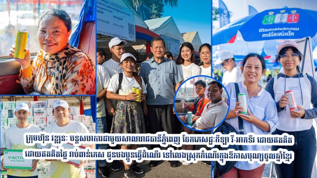 ក្រុមហ៊ុន វឌ្ឍនៈ បន្តសហការជាមួយសាលារាជធានីភ្នំពេញ ចែកភេសជ្ជៈកីឡា វី-អាកទីវ ដោយឥតគិតថ្លៃ រាប់ពាន់កេស ជូនបងប្អូនធ្វើដំណើរ ទៅលេងស្រុកកំណើរក្នុងឱកាសបុណ្យចូលឆ្នាំខ្មែរ