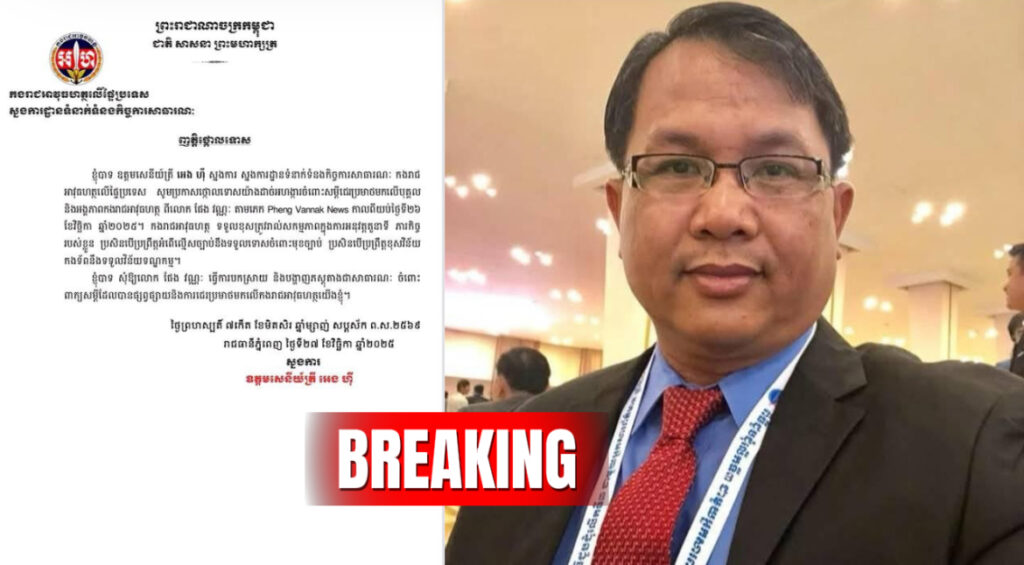 BREAKING: អ្នកនាំពាក្យអាវុធហត្ថលើផ្ទៃប្រទេស ចេញញត្តិថ្កោលទោសការជេរប្រមាថរបស់លោក ផែង វណ្ណះ មកលើកងរាជអាវុធហត្ថ