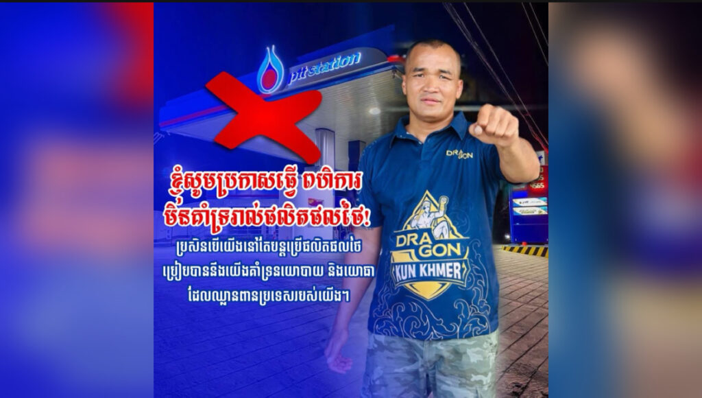 គ្រូឆ្នេីមប្រដាល់គុនខ្មែរ លោក ពេជ្រ សុផាន់ ប្រកាសឈប់ប្រេីផលិតផលថៃ ពិសេសប្រេងសាំង PTT