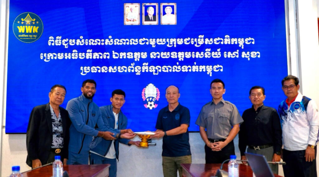 ឯកឧត្តម នាយឧត្តមសេនីយ៍ សៅ សុខា ប្រធានសហព័ន្ធកីឡាបាល់ទាត់កម្ពុជា និងក្រុមហ៊ុន វឌ្ឍនៈ ប្រ៊ូវើរី និងសប្បុរសជន បានឧបត្ថម្ភដល់ក្រុមជម្រើសជាតិកម្ពុជា ជាទឹកប្រាក់ក្នុងម្នាក់ចំនួន ១,០០០ដុល្លារ
