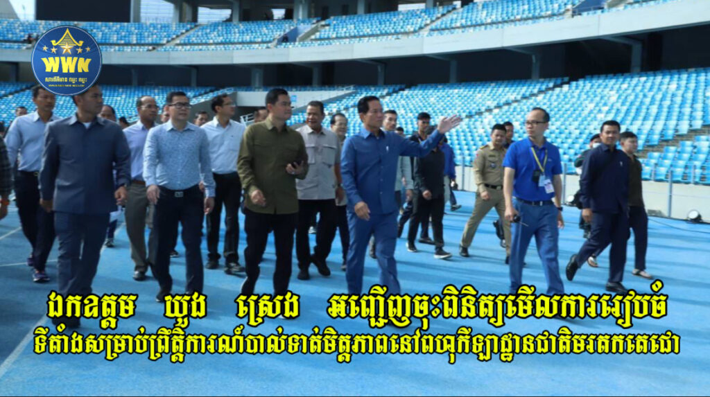 ឯកឧត្តម ឃួង ស្រេង អញ្ជើញចុះពិនិត្យមើលការរៀបចំទីតាំងសម្រាប់ព្រឹត្តិការណ៍បាល់ទាត់មិត្តភាពនៅពហុកីឡាដ្ឋានជាតិមរតកតេជោ