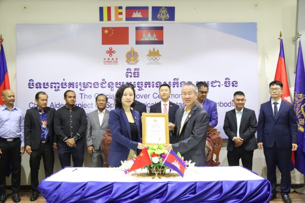 ឯកឧត្តម វ៉ាត់ ចំរើន និង អគ្គកុងសុលស្ថានទូតចិន អញ្ជើញចុះហត្ថលេខាបិទបញ្ចប់គម្រោងជំនួយបច្ចេកទេសកីឡាកម្ពុជា