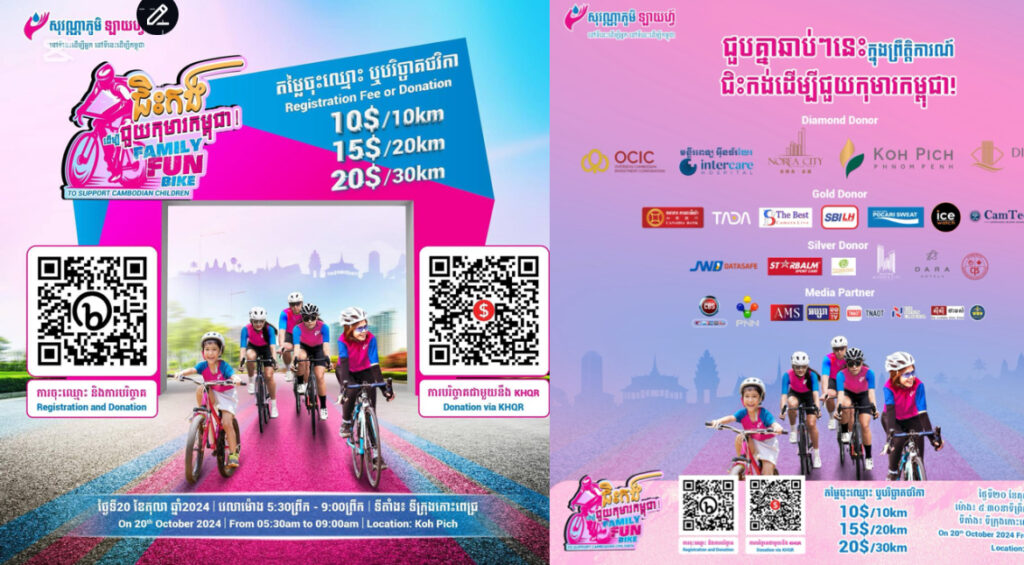 ព្រឹត្តិការណ៍ “ជិះកង់ដើម្បីជួយកុមារកម្ពុជា” នឹងប្រព្រឹត្តទៅនៅថ្ងៃទី 20 ខែ តុលា ឆ្នាំ ២០២៤-The “Ride for Cambodian Children” event will take place on October 20, 2024.
