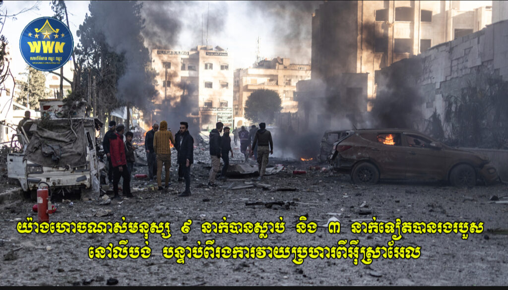 យ៉ាងហោចណាស់មនុស្ស ៩ នាក់បានស្លាប់ និង ៣ នាក់ទៀតបានរងរបួស នៅលីបង់ បន្ទាប់ពីរងការវាយប្រហារពីអុីស្រាអែល