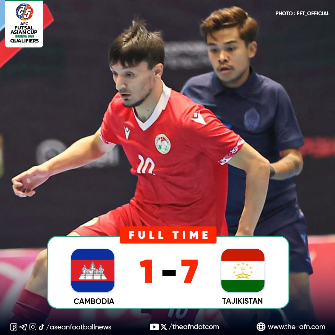 ក្រុមជម្រើសជាតិហ្វូសាលកម្ពុជាចាញ់តាជីគីស្ថាន ក្នុងលទ្ធផល ១-៧ នៃពានរង្វាន់ AFC Futsal Asian Cup 2026 វគ្គជម្រុះពូល C