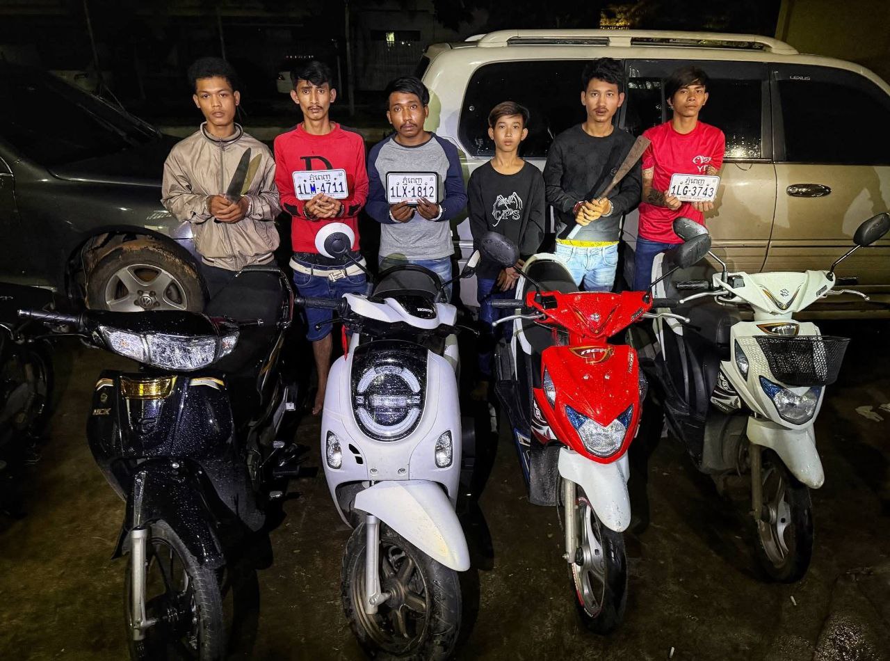 ឃាត់ខ្លួន ជនសង្ស័យចំនួន ៦នាក់ និងម៉ូតូ៤គ្រឿង ដាវ(ធ្វេីសកម្មភាពកាប់ជនរងគ្រោះ)