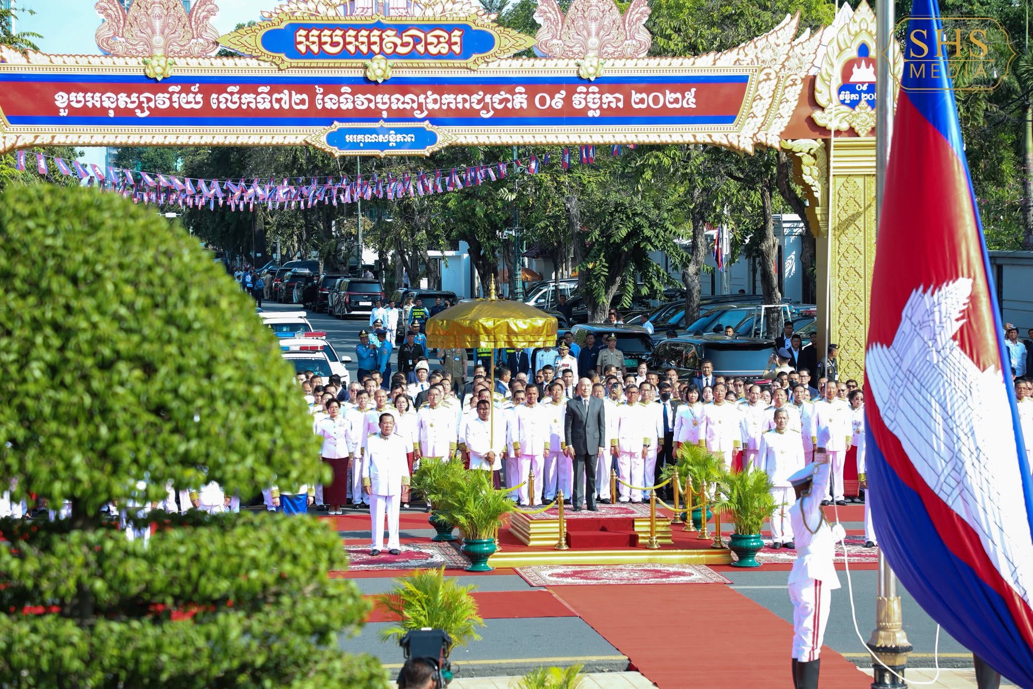 សម្ដេចតេជោ ហ៊ុន សែន អញ្ជើញដង្ហែព្រះមហាក្សត្រ ក្នុងខួបអនុស្សាវរីយ៍៧២ឆ្នាំ នៃទិវាបុណ្យឯករាជ្យជាតិ ៩វិច្ឆិកា