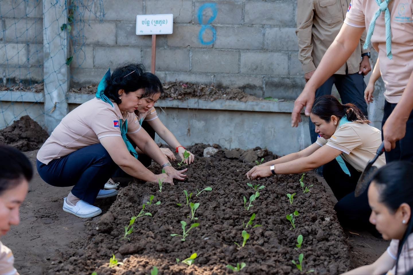 លោកជំទាវបណ្ឌិត បានមានប្រសាសន៍ថា “ដើម្បីបង្កើនទឹកចិត្ត និងកម្លាំងខ្មែរជួយខ្មែរ លោកជំទាវបានរៀបចំឱ្យសាខារបស់កាយឫទ្ធិនារីកម្ពុជាទាំងអស់ បំផុសបំផុលសមាជិកាសកម្មភាពធ្វើការចាប់ផ្តើមដាំបន្លែ នៅតាមសាលារៀនរបស់ខ្លួន ឬនៅដីរបស់សហគមន៍ ទុកសម្រាប់ផ្គត់ផ្គង់ និងជួយគាំទ្រដល់ជនភៀសសឹកបានមួយចំនួន” ។ លោកជំទាវបណ្ឌិត ពេជ ចន្ទមុន្នី ហ៊ុនម៉ាណែត បានបន្តថា “សូមដាំបន្លែណាដែលឆាប់បានទទួលផល គឺចាប់ផ្តើមពីតូច តែ លោកជំទាវ ចង់ឱ្យសិស្សសាលាមានការចូលរួមក្នុងគ្រាដ៏លំបាកជាមួយបងប្អូនវីរកងទ័ព” ។
