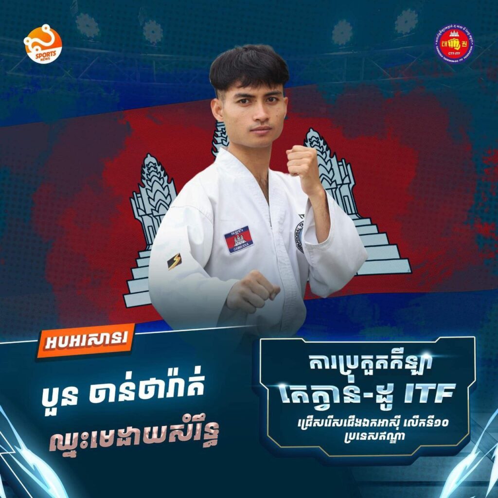 កម្ពុជា ទទួលបានមេដាយចំនួន ៥បន្ងែមទៀត នៅក្នុងព្រឹត្តិការណ៍ប្រកួតកីឡាតេក្វាន់-ដូ ITF ជើងឯកអាស៊ីលើកទី១០ នៅឥណ្ឌា