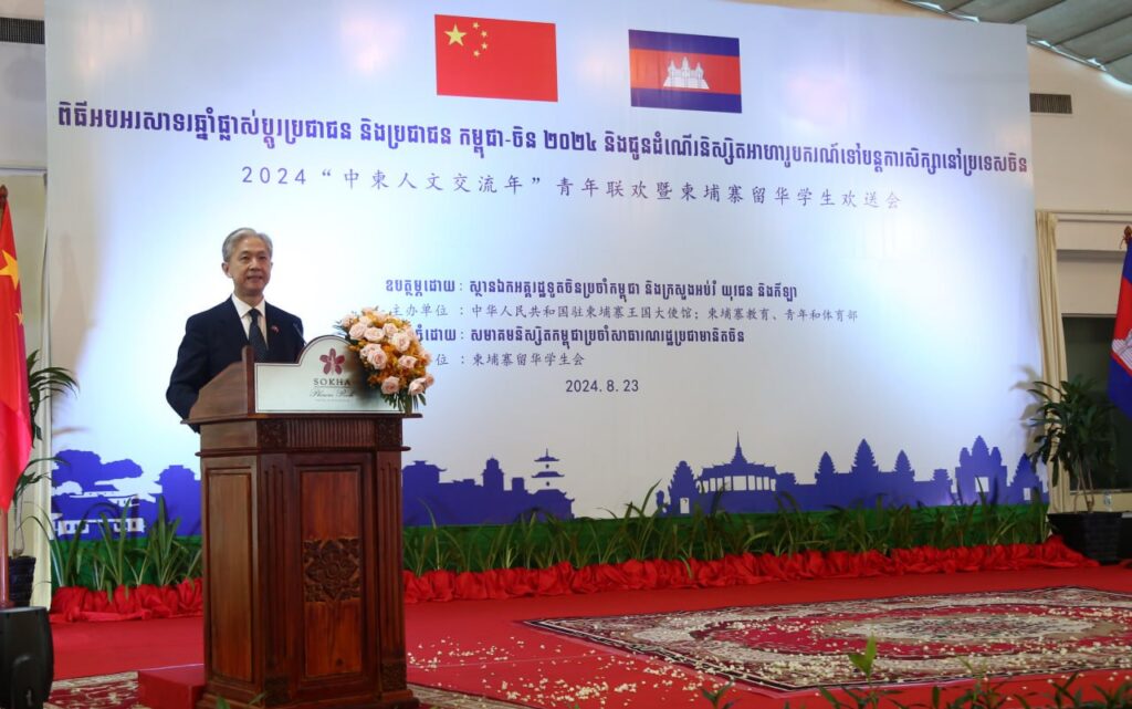 នៅក្នុងឱកាសនោះដែរ ឯកឧត្តម វ៉ាង វិនពីន ឯកអគ្គរដ្ឋទូតចិនប្រចាំនៅកម្ពុជាបានអបអរសាទរដល់និស្សិតកម្ពុជាដែលទទួលបានអាហារូបករណ៍ទៅសិក្សាប្រទេសចិន ដើម្បីទទួលបានចំណេះដឹងថ្មីៗបទពិសោធន៍យកមកចូលរួមអភិវឌ្ឍន៍ប្រទេសកម្ពុជាឱ្យកាន់តែរីកចម្រើន ។ មិនត្រឹមតែប៉ុណ្ណោះទេ និស្សិតដែលទៅរៀនប្រទេសចិននេះ នឹងក្លាយជាអ្នកបន្តវេនពូនជ្រុំចំណងមិត្តភាពរវាងប្រទេសកម្ពុជា និងកាន់ឱ្យកាន់តែរឹងមាំថែមទៀត ព្រោះបច្ចុប្បន្ននេះ ប្រទេសយើងទាំងពីរបានសម្រេចបានជាមិត្តដែកថែបមិនអាចបំបែកបាន។ ទំនាក់ទំនងប្រទេសកម្ពុជា និងចិនបានឈានដល់ដំណាក់កាលថ្មីមួយក្នុងការកសាងសហគមន៍វាសនារួម ដែលមាន គុណភាពខ្ពស់ ស្ដង់ដារខ្ពស់ និងកម្រិតខ្ពស់។ ជាមួយគ្នានេះ រដ្ឋាភិបាលចិន នឹងបន្តផ្តល់អាហារូបករណ៍ដល់និស្សិតកម្ពុជាឱ្យបានទៅសិក្សានៅប្រទេសចិនឱ្យបានច្រើនបន្ថែមទៀត។