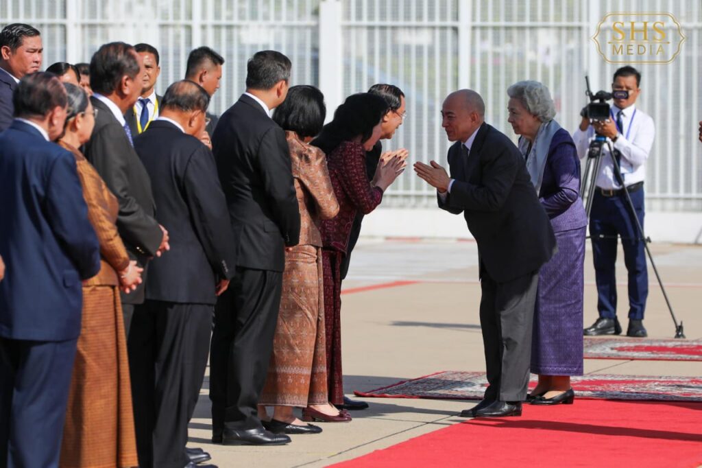 ភ្នំពេញ៖ ថ្ងៃទី២៦ ខែសីហា ឆ្នាំ២០២៤ ព្រះករុណាជាអម្ចាស់ជីវិតលើត្បូង ព្រះបាទសម្តេចព្រះបរមនាថ នរោត្តម សីហមុនី ព្រះមហាក្សត្រនៃព្រះរាជាណាចក្រកម្ពុជា និងសម្តេចព្រះមហាក្សត្រី នរោត្តម មុនិនាថ សីហនុ ព្រះវររាជមាតាជាតិខ្មែរ ក្នុងសេរីភាព សេចក្តីថ្លៃថ្នូរ និងសុភមង្គល ជាទីសក្ការៈដ៏ខ្ពង់ខ្ពស់បំផុត ព្រះអង្គទាំងទ្វេស្តេចយាងចាកចេញពីព្រលានយន្តហោះអន្តរជាតិភ្នំពេញហើយ នាព្រឹកថ្ងៃទី២៦ ខែសីហា ឆ្នាំ២០២៤ ដើម្បីទៅពិនិត្យព្រះរាជសុខភាព នៅទីក្រុងប៉េកាំង សាធារណរដ្ឋប្រជាមានិតចិន។