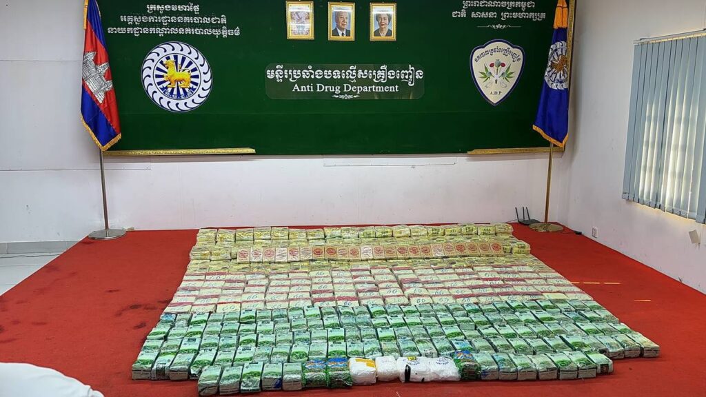 នាព្រឹកថ្ងៃទី២៦ ខែសីហា ឆ្នាំ២០២៤នេះ សមត្ថកិច្ចរបស់មន្ទីរប្រឆាំងបទល្មើសគ្រឿងញៀន បានធ្វើការបង្ក្រាបក្រុមឧក្រិដ្ឋជនជួញដូរគ្រឿងញៀនចំនួន ០៦នាក់ យកមកបង្ហាញមុខជាសាធារណៈ ក្នុងប្រតិបត្តិការនេះ កម្លាំងសមត្ថកិច្ច ធ្វើការដកហូតថ្នាំញៀនបានជាង ៤០០គីឡូក្រាម នៅក្នុងភូមិសាស្ត្ររាជធានីភ្នំពេញ ដោយប្រតិបត្តិការនេះ គឺមានការដឹកនាំបញ្ជាផ្ទាល់ពី ឯកឧត្តម ឧត្តមសេនីយ៍ឯក ឃឹង សារ៉ាត់ នាយមន្ទីរប្រឆាំងបទល្មើសគ្រឿងញៀន នៃអគ្គស្នងការនគរបាលជាតិ៕