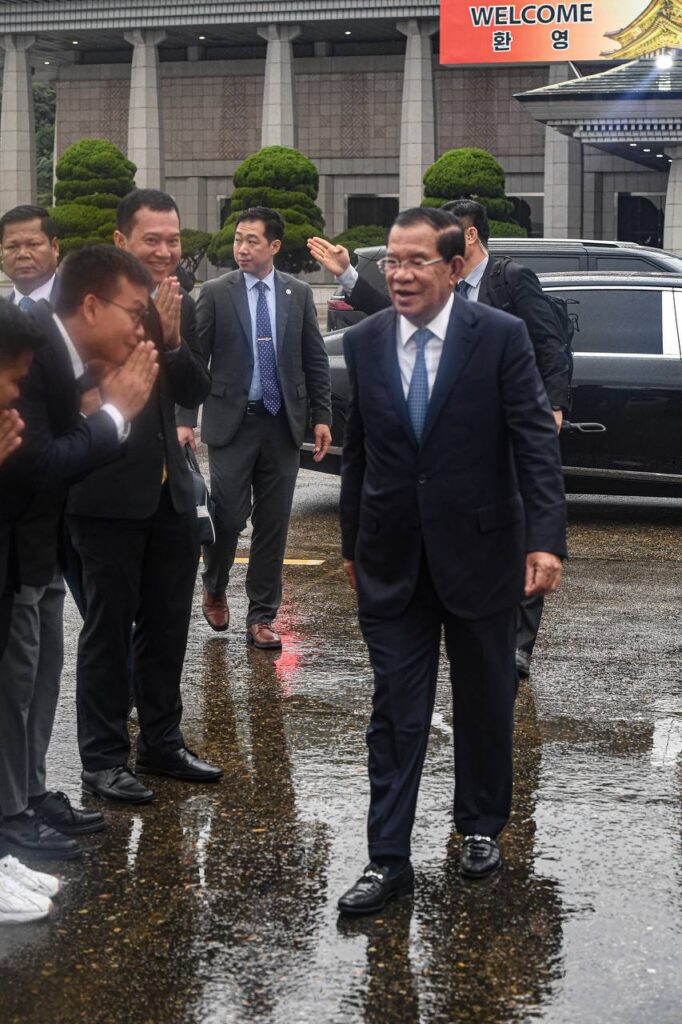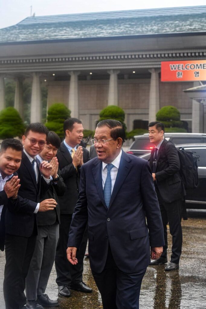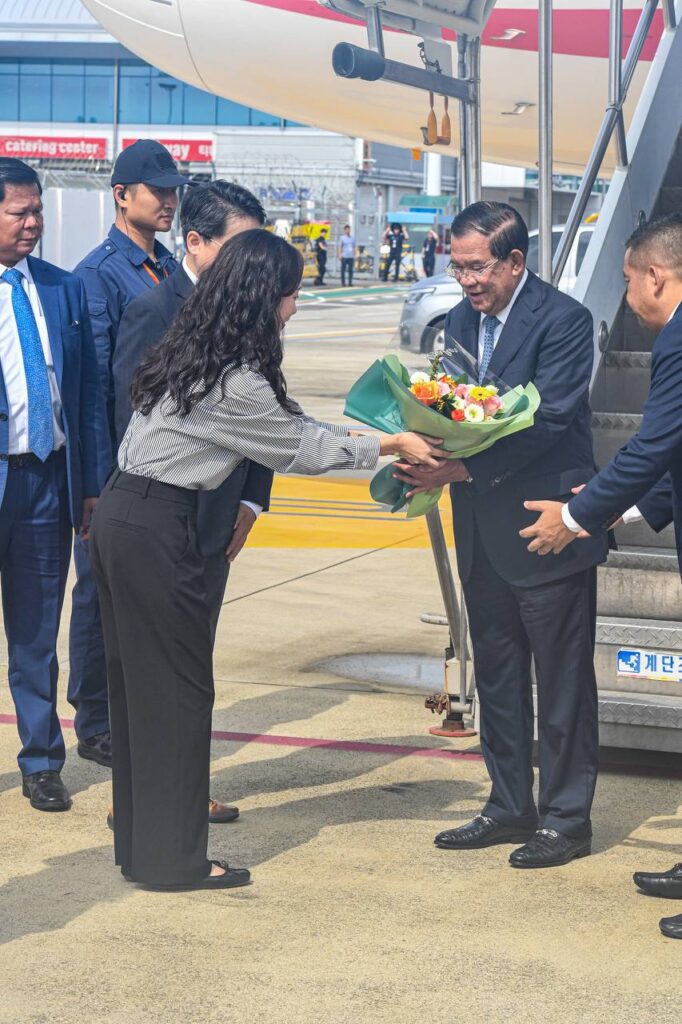 នាព្រឹកថ្ងៃទី១២ ខែកញ្ញា ឆ្នាំ២០២៤នេះ សម្តេចអគ្គមហាសេនាបតីតេជោ ហ៊ុន សែន ប្រធានព្រឹទ្ធសភា នៃព្រះរាជាណាចក្រកម្ពុជា ធ្វើដំណើរចាកចេញពីទីក្រុងសេអ៊ូល បន្តទៅកាន់ខេត្តឃ្យុងសាងបុកដូ សាធារណរដ្ឋកូរ៉េ ដើម្បីទទួលសញ្ញាបត្របណ្ឌិតកិត្តិយស « ក្នុងភាពជាអ្នកដឹកនាំ និងការកសាងសន្តិភាព » ពីសាកលវិទ្យាល័យដុងហ្គុកវ៉ាយស៍ (Dongguk University WISE) នេះជាកិត្តិយសដ៏ធំធេងសម្រាប់ប្រជាជនខ្មែរ ដែលមានមេដឹកនាំល្អ ជាស្ថាបនិកកម្ពុជាដ៏ក្លាហាន តែមួយគត់ដែលដឹកនាំប្រទេសឱ្យរួចផុតពីភ្លើងសង្គ្រាម និងមានការអភិវឌ្ឍន៍ ភាពរីកចម្រើនដល់ថ្ងៃបច្ចុប្បន្ន៕