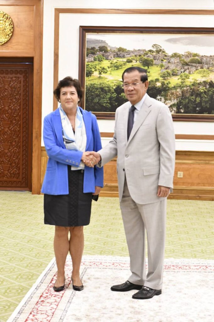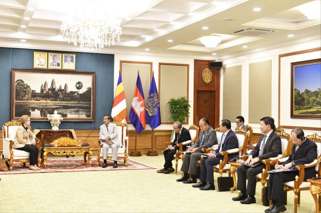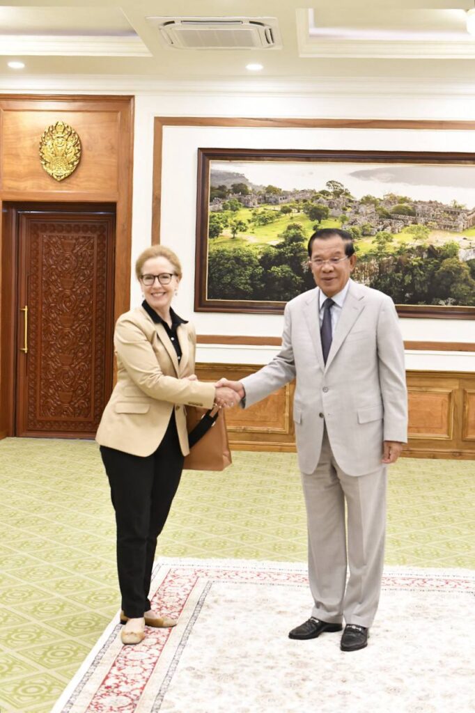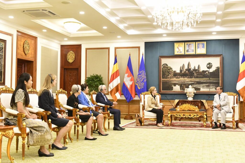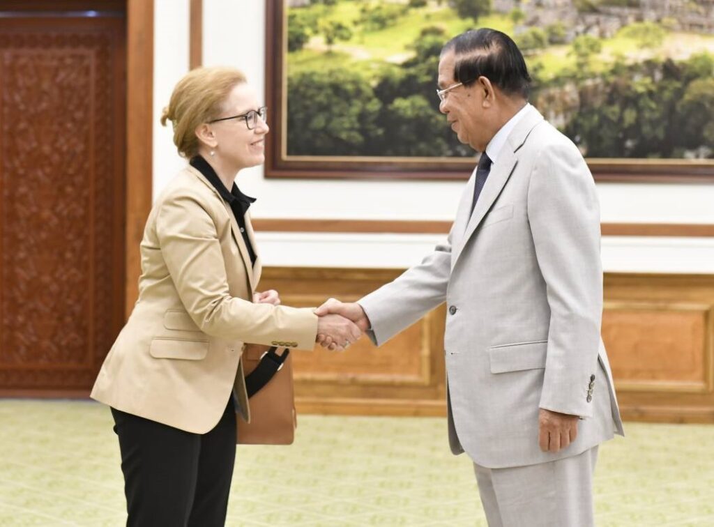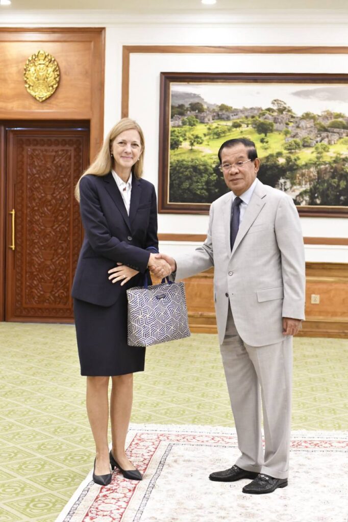 ថ្ងៃទី១៨ ខែកញ្ញា ឆ្នាំ២០២៤ សម្ដេចអគ្គមហាសេនាបតីតេជោ ហ៊ុន សែន ប្រមុខរដ្ឋស្ដីទីនៃព្រះរាជាណាចក្រកម្ពុជា អនុញ្ញាតឲ្យ លោកស្រី លូរាល់ មីលឺ (Laurel. E Miller) ប្រធាន និងនាយកប្រតិបត្តិមូលនិធិអាស៊ី (Asia Foundation) ចូលជួបសំដែងការគួរសម នៅវិមានព្រឹទ្ធសភា រាជធានីភ្នំពេញ។