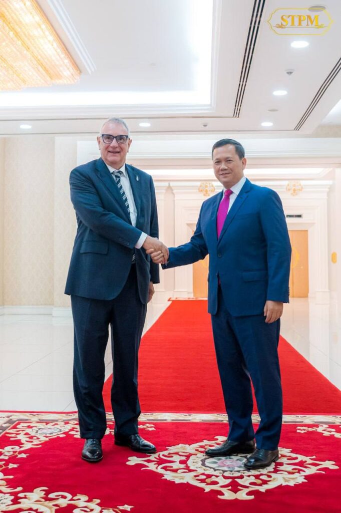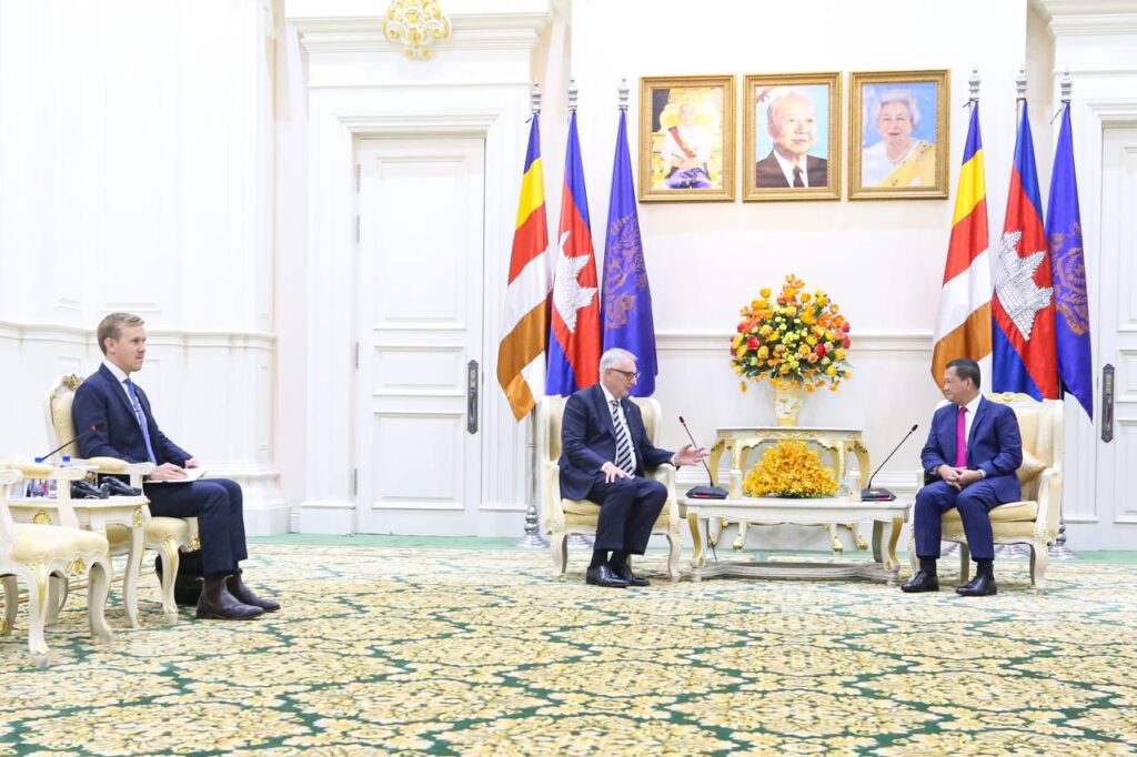 ភ្នំពេញ៖ ថ្ងៃទី១៩ ខែកញ្ញា ឆ្នាំ២០២៤ សម្តេចមហាបវរធិបតី ហ៊ុន ម៉ាណែត នាយករដ្ឋមន្ត្រី នៃព្រះរាជាណាចក្រកម្ពុជា ទទួលជួបសម្ដែងការគួរសម និងពិភាក្សាការងារជាមួយឯកឧត្តម Jonathan Kings ឯកអគ្គរដ្ឋទូតនៃប្រទេសនូវែលសេឡង់ប្រចាំព្រះរាជាណាចក្រកម្ពុជា ដែលមាននិវេសនដ្ឋាននៅទីក្រុងបាងកក នាព្រឹកថ្ងៃទី១៩ ខែកញ្ញា ឆ្នាំ២០២៤ នៅវិមានសន្តិភាព រាជធានីភ្នំពេញ។