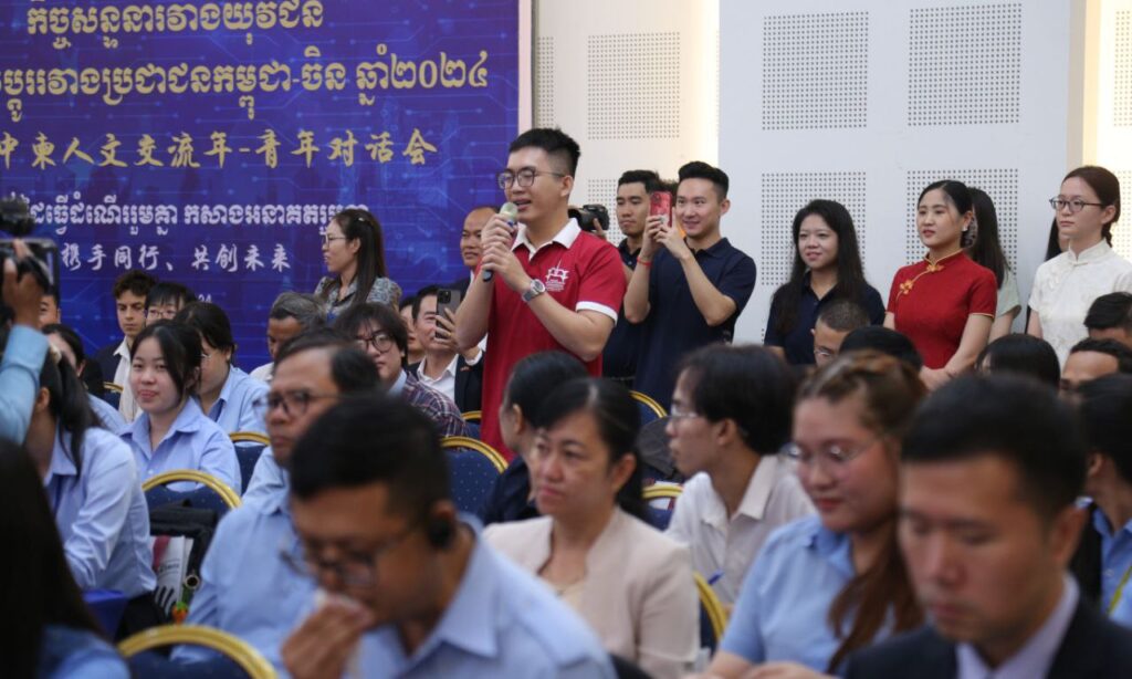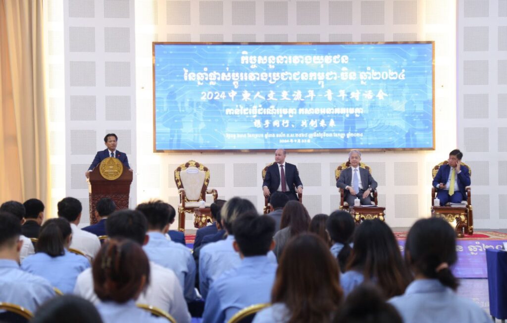 ភ្នំពេញ៖ ស្ថានទូតចិនប្រចាំកម្ពុជា និងរាជបណ្ឌិត្យសភាកម្ពុជានាព្រឹកថ្ងៃទី២៣ ខែកញ្ញាឆ្នាំ២០២៤នៅរាជបណ្ឌិត្យភាកម្ពុជាបានរៀបចំកិច្ចសន្ទនារវាងយុវជននៃឆ្នាំផ្លាស់ប្ដូររវាងប្រជាជនកម្ពុជា-ចិនឆ្នាំ២០២៤ជាមួយនឹងប្រធានបទ កាន់ដៃធ្វើដំណើររួមគ្នា កសាងអនាគតរួមគ្នា ។