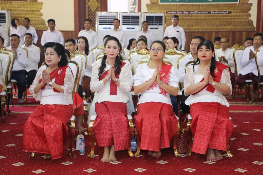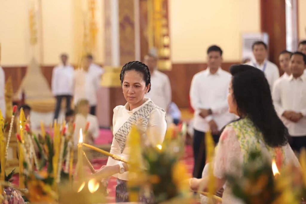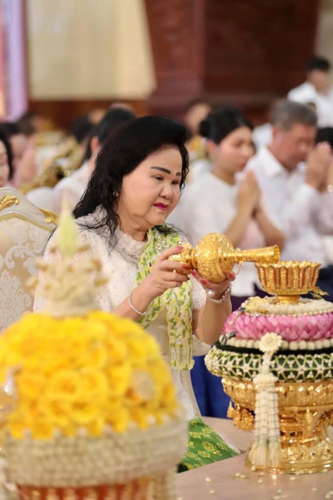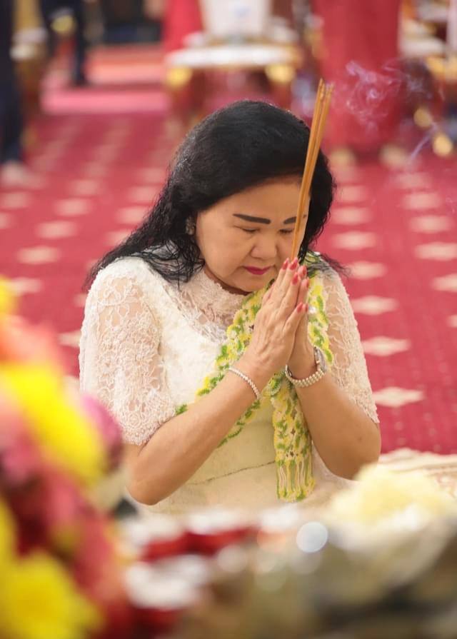 សម្តេចកិត្តិព្រឹទ្ធបណ្ឌិត ប៊ុន រ៉ានី ហ៊ុនសែន ប្រធានកាកបាទក្រហមកម្ពុជា ភរិយាដ៏ឧត្តុង្គឧត្តមរបស់សម្តេចអគ្គមហាសេនាបតីតេជោ ហ៊ុន សែន ប្រធានព្រឹទ្ធសភានៃព្រះរាជាណាចក្រកម្ពុជា ព្រមទាំងក្រុមគ្រួសារ អមដំណើរដោយថ្នាក់ដឹកនាំ-មន្ត្រីរាជការគ្រប់លំដាប់ថ្នាក់ និងពុទ្ធបរិស័ទជាច្រើននាក់ អញ្ជើញបូជាទៀន ធូប ផ្កាភ្ញី ថ្វាយព្រះរតនត្រ័យ និងចូលរួមពិធីសូត្រមន្តក្នុងឱកាសពិធីបុណ្យកាន់បិណ្ឌវេនទី១៣ នៅវត្តបទុមវតីរាជវរារាម ដែលស្ថិតនៅសង្កាត់ចតុមុខ ខណ្ឌដូនពេញ រាជធានីភ្នំពេញ៕