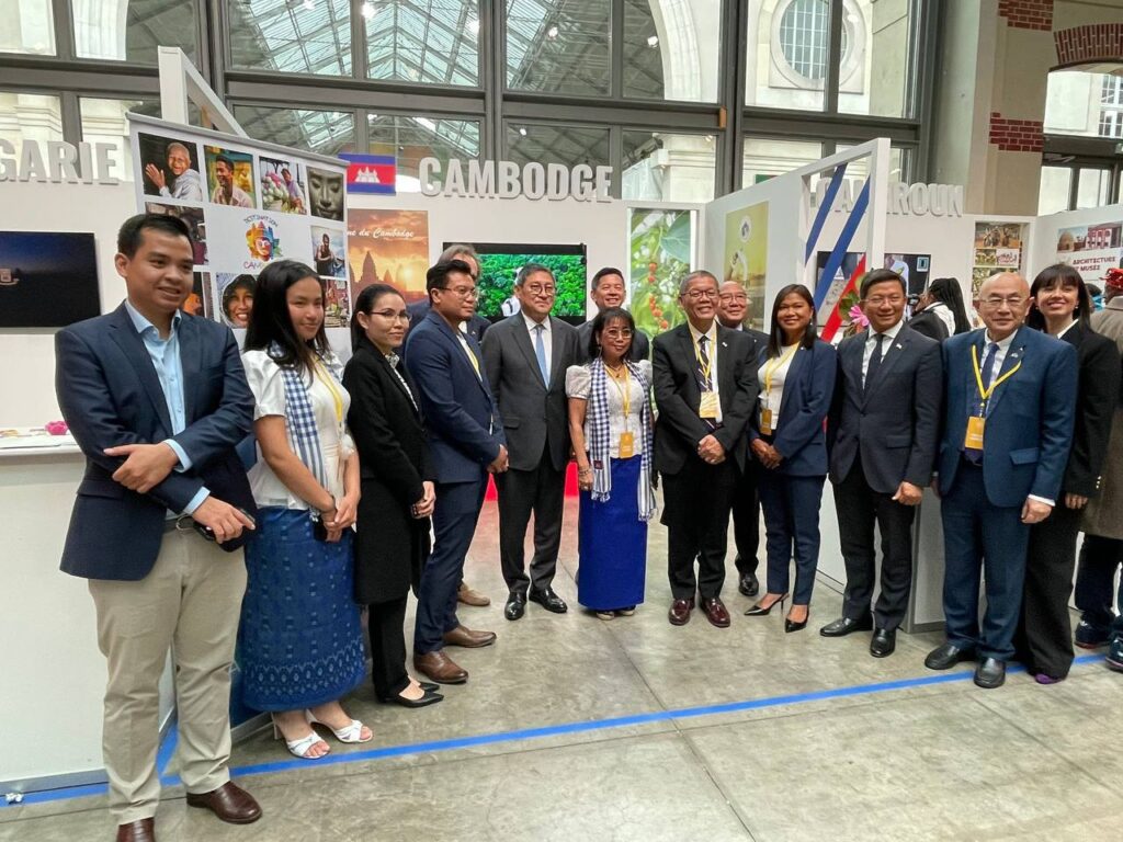 នៅថ្ងៃទី០២ ខែតុលា ឆ្នាំ២០២៤ នៅក្នុងឱកាសនៃការដង្ហែ ព្រះករុណាជាអម្ចាស់ជីវិតលើត្បូង យាងចូលរួមកិច្ចប្រជុំកំពូលហ្វ្រង់កូហ្វូនីលើកទី១៩ ឯកឧត្តម សុខ ចិន្តាសោភា ឧបនាយករដ្ឋមន្រ្តី និងជារដ្ឋមន្រ្តីការបរទេស និងសហប្រតិបត្តិការអន្តរជាតិ បានអញ្ជើញចូលរួមក្នុងពិធីសម្ពោធកម្មវិធី “ភូមិហ្វ្រង់កូហ្វូនី” ដែលជាកម្មវិធីពិព័រណ៍ តាំងបង្ហាញផលិតផលសំខាន់ៗប្រកបដោយសក្តានុពលរបស់ប្រទេសមាជិកចូលរួម នៅមជ្ឈមណ្ឌល Centquatre ក្នុងទីក្រុងប៉ារីស។