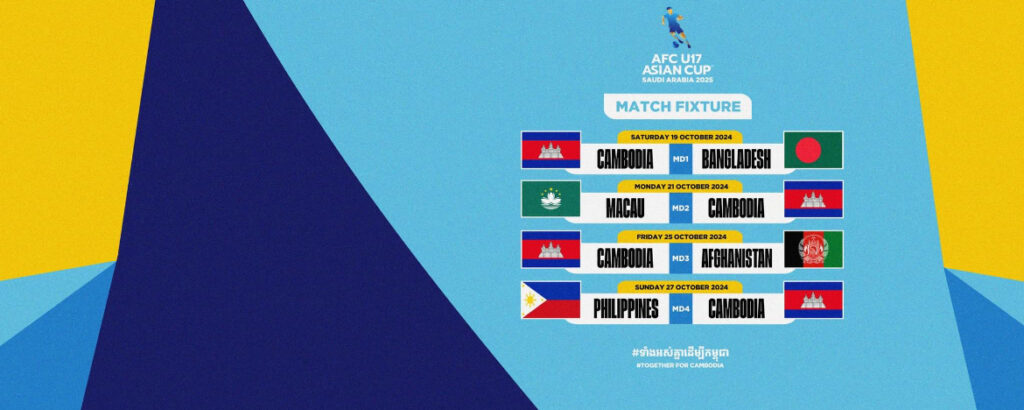 កម្ពុជា នឹងធ្វេីជាម្ចាស់ផ្ទះវគ្គជម្រុះពានរង្វាន់ AFC U17 Asian Cup 2025 Qualifiers ដោយស្ថិតក្នុងពូល B