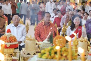 ពិធីបែបសាសនានៃអង្គកឋិនទានមហាសាមគ្គីគ្រួសារខ្មែរដង្ហែឆ្ពោះទៅវត្តខ្មែរក្រោមនារសៀលថ្ងៃនេះប្រព្រឹត្តទៅនៅវិមាន៧មករា ទីស្នាក់ការកណ្តាលគណបក្សប្រជាជនកម្ពុជា ក្រោមអធិបតីភាពសម្តេចតេជោ ហ៊ុន សែន ប្រធានព្រឹទ្ធសភា សម្តេចកិត្តិព្រឹទ្ធបណ្ឌិត ប៊ុន រ៉ានី ហ៊ុនសែន ប្រធានកាកបាទក្រហមកម្ពុជា និងសម្តេចពញាចក្រី ហេង សំរិន ប្រធានកិត្តិយសគណបក្សប្រជាជនកម្ពុជា។ ក្នុងពិធីនេះ ក៏មានការអញ្ជើញចូលរួមពីសម្តេចមហារដ្ឋសភាធិការបតី ឃួន សុដារី ប្រធានរដ្ឋសភា សម្តេចមហាបវរធិបតី ហ៊ុន ម៉ាណែត នាយករដ្ឋមន្ត្រីកម្ពុជា លោកជំទាវបណ្ឌិត ពេជ ចន្ទមុន្នី ហ៊ុនម៉ាណែត ព្រមទាំងសមាជិក សមាជិកាព្រឹទ្ធសភា រដ្ឋសភា និងរាជរដ្ឋាភិបាលជាច្រើនរូបទៀត។