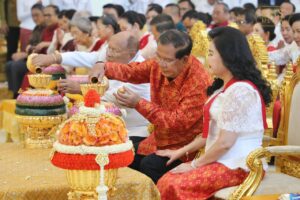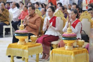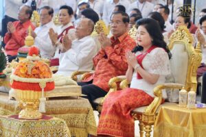 សម្ដេចតេជោ ហ៊ុន សែន និងសម្ដេចកិតិ្តព្រឹទ្ធបណ្ឌិត អញ្ជើញក្នុងពិធីសូត្រមន្ត អង្គកឋិនទានមហាសាមគ្គីគ្រួសារខ្មែរ ដង្គែទៅកាន់វត្តពោធិគិរីវង្សារាម ខេត្តតា្រវិញ សាធារណរដ្ឋសង្គមនិយមវៀតណាម