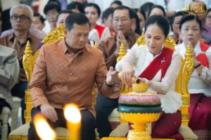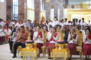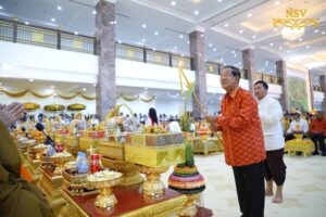 ភ្នំពេញ៖ នារសៀលថ្ងៃអាទិត្យ ទី៣ ខែវិច្ឆិកា ឆ្នាំ២០២៤ ឯកឧត្តមសន្តិបណ្ឌិត នេត សាវឿន ឧបនាយករដ្ឋមន្រ្តី បានអញ្ជើញអមដំណើរសម្តេចមហាបវរធិបតី ហ៊ុន ម៉ាណែត នាយករដ្ឋមន្ត្រី នៃព្រះរាជាណាចក្រកម្ពុជា និងលោកជំទាវបណ្ឌិត ពេជ ចន្ទមុន្នី ហ៊ុនម៉ាណែត អញ្ជើញចូលរួមក្នុងពិធីក្រុងពាលី នមស្ការ អង្គកឋិនទានមហាគ្រួសារខ្មែរ ដង្ហែរទៅកាន់វត្តពោធិគិរីវង្សារាម ខេត្តត្រាវិញ សាធារណរដ្ឋសង្គមនិយមវៀតណាម នៅវិមាន៧មករា ក្រោមអធិបតីភាពដ៏ខ្ពង់ខ្ពស់ សម្តេចអគ្គមហាសេនាបតីតេជោ ហ៊ុន សែន ប្រធានព្រឹទ្ធសភា នៃព្រះរាជាណាចក្រកម្ពុជា និងជាប្រធានគណបក្សប្រជាជនកម្ពុជា និងសម្តេចកិត្តិព្រឹទ្ធបណ្ឌិត ប៊ុន រ៉ានី ហ៊ុន សែន និងសម្តេចអគ្គមហាពញាចក្រី ហេង សំរិន ប្រធានកិត្តិយសគណបក្សប្រជាជនកម្ពុជា។