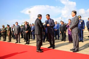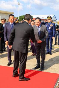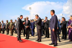 ភ្នំពេញ៖ ថ្ងៃទី០៥ ខែវិច្ឆិកា ឆ្នាំ២០២៤ សម្តេចមហាបវរធិបតី ហ៊ុន ម៉ាណែត នាយករដ្ឋមន្ត្រី នៃព្រះរាជាណាចក្រកម្ពុជា ដឹកនាំគណៈប្រតិភូជាន់ខ្ពស់ចាកចេញពីអាកាសយានដ្ឋានអន្តរជាតិភ្នំពេញ នារសៀលថ្ងៃទី០៥ ខែវិច្ឆិកា ឆ្នាំ២០២៤ ដើម្បីអញ្ជើញទៅចូលរួមកិច្ចប្រជុំនានា ចាប់ពីថ្ងៃទី០៦ ដល់ថ្ងៃទី០៧ ខែវិច្ឆិកា ឆ្នាំ២០២៤ នៅទីក្រុងគុនមិញ សាធារណរដ្ឋប្រជាមានិតចិន។