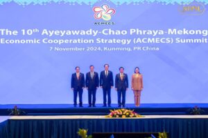 យូណាន៖ ថ្ងៃទី០៧ ខែវិច្ឆិកា ឆ្នាំ២០២៤ សម្តេចមហាបវរធិបតី ហ៊ុន ម៉ាណែត នាយករដ្ឋមន្ត្រី នៃព្រះរាជាណាចក្រកម្ពុជា អញ្ជើញចូលរួមកិច្ចប្រជុំកំពូលនៃកិច្ចសហប្រតិបត្តិការ ACMECS លើកទី១០ ក្រោមមូលបទ «ឆ្ពោះទៅរកការតភ្ជាប់ដោយរលូន សម្រាប់សមាហរណកម្មអនុតំបន់មេគង្គ» នៅខេត្តយូណាន សាធារណរដ្ឋប្រជាមានិតចិន នារសៀលថ្ងៃទី០៧ ខែវិច្ឆិកា ឆ្នាំ២០២៤។