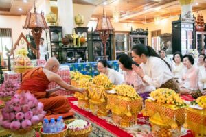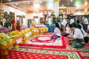 កាលព្រឹកថ្ងៃទី០៩ ខែវិច្ឆិកា ឆ្នាំ២០២៤ សម្ដេចកិត្តិព្រឹទ្ធបណ្ឌិត ប៊ុន រ៉ានី ហ៊ុន សែន ប្រធានកាកបាទក្រហមកម្ពុជា និងលោកជំទាវបណ្ឌិត ពេជ ចន្ទមុន្នី ហ៊ុន ម៉ាណែត អមដំណើរដោយឯកឧត្តម ប្រាក់ សោភ័ណ្ឌ អភិបាលខេត្តសៀមបានអញ្ជើញបូជាទៀនធូប ផ្កាភ្ញី ទេយ្យទាន ដល់វត្តរាជបូណ៌ស្ថិតក្នុងក្រុងសៀមរាប ខេត្តសៀមរាប។