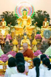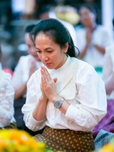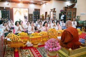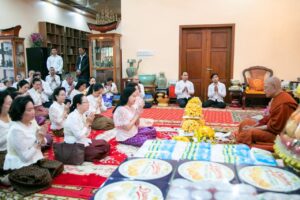សម្ដេចកិត្តិព្រឹទ្ធបណ្ឌិត ប៊ុន រ៉ានី ហ៊ុន សែន និងលោកជំទាវបណ្ឌិត ពេជ ចន្ទមុន្នី ហ៊ុនម៉ាណែត អញ្ជើញបូជាទៀនធូបនៅវត្តរាជបូណ៌និងព្រះអង្គចេក ព្រំអង្គចម