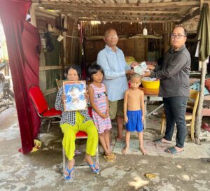 តំណាងលោក ឡុង រតនា ប្រធានមូលនិធិ បានយកបច្ច័យបុណ្យទានរបស់សប្បុរសជន ជូនក្រុមគ្រួសារសពក្មួយៗ ចំនាក់៥នាក់ ក្នុងម្នាក់ទទួលបាន៥សែនរៀល