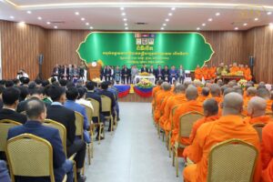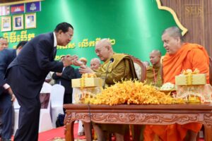 សម្តេចតេជោ ហ៊ុន សែន អញ្ជើញជាព្រះរាជតំណាងដ៏ខ្ពង់ខ្ពស់ព្រះករុណា ព្រះបាទ សម្ដេច ព្រះបរមនាថ នរោត្តម សីហមុនី ព្រះមហាក្សត្រ នៃព្រះរាជាណាចក្រកម្ពុជា ក្នុងពិធីបើកអនុសំវច្ឆរមហាសន្និបាតមន្ត្រីសង្ឃ ទូទាំងប្រទេសលើកទី៣២