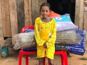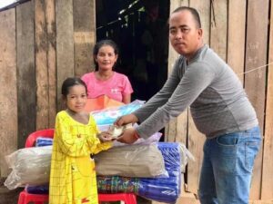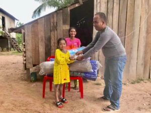 លោក ឃួន ប៊ុនណែត តំណាងលោក ឡុង រតនា ប្រធានមូលនិធិ បានយកថវិកា និងសម្ភារៈមួយចំនួនជូនដល់ក្មួយស្រី ដែលកំពុងខ្វះខាតថ្លែព្យាបាលជំងឺ