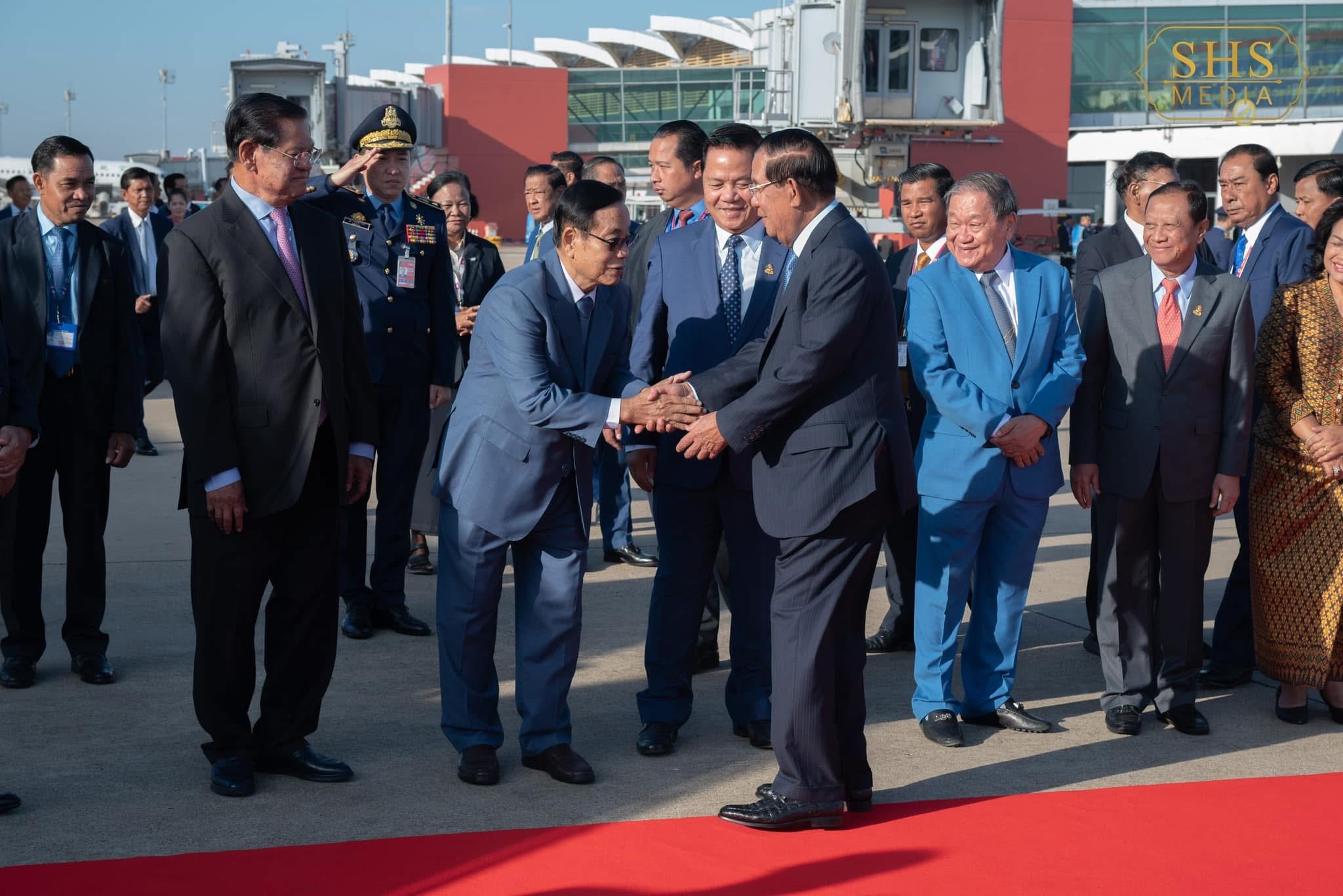 សមាសភាពគណៈប្រតិភូអមដំណើរ សម្តេចតេជោ ហ៊ុន សែន ក្នុងទស្សនកិច្ចរួមមាន សម្តេចពិជ័យ- សេនា ទៀ បាញ់ ឧត្តមក្រុមប្រឹក្សាផ្ទាល់ព្រះមហាក្សត្រ និងជាអនុប្រធានគណបក្សប្រជាជនកម្ពុជា លោក ប្រាក់ សុខុន ឧបនាយករដ្ឋមន្ត្រី និងជារដ្ឋមន្ត្រីការបរទេស និងសហប្រតិបត្តិការអន្តរជាតិ និងជាប្រធាន គណៈទាក់ទងការបរទេសនៃគណបក្សប្រជាជនកម្ពុជា លោកបណ្ឌិត ធន់ វឌ្ឍនា អនុប្រធានទី២ នៃ ព្រឹទ្ធសភា ព្រមទាំងឧបនាយករដ្ឋមន្ត្រី រដ្ឋមន្ត្រីនៃក្រសួង/ស្ថាប័ន និងថ្នាក់ដឹកនាំសំខាន់ៗរបស់ស្ថាប័ននីតិ- ប្បញ្ញត្តិ និងរាជរដ្ឋាភិបាល។
