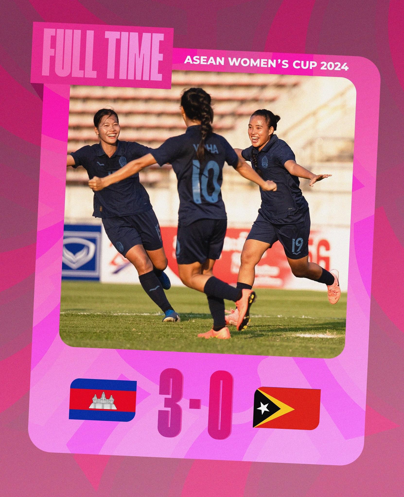 អបអរសាទរ! ក្រុមបាល់ទាត់នារីកម្ពុជា ឡើងវគ្គផ្តាច់ព្រ័ត្រពានរង្វាន់ ASEAN Women Cup ជាលើកដំបូងក្នុងប្រវត្តិសាស្ត្រ ក្រោយយកឈ្នះទីម័រ ៣-០ វគ្គផ្តាច់ព្រ័ត្រយើងអាចប៉ះ ឥណ្ឌូនេស៊ី ឬឡាវ។