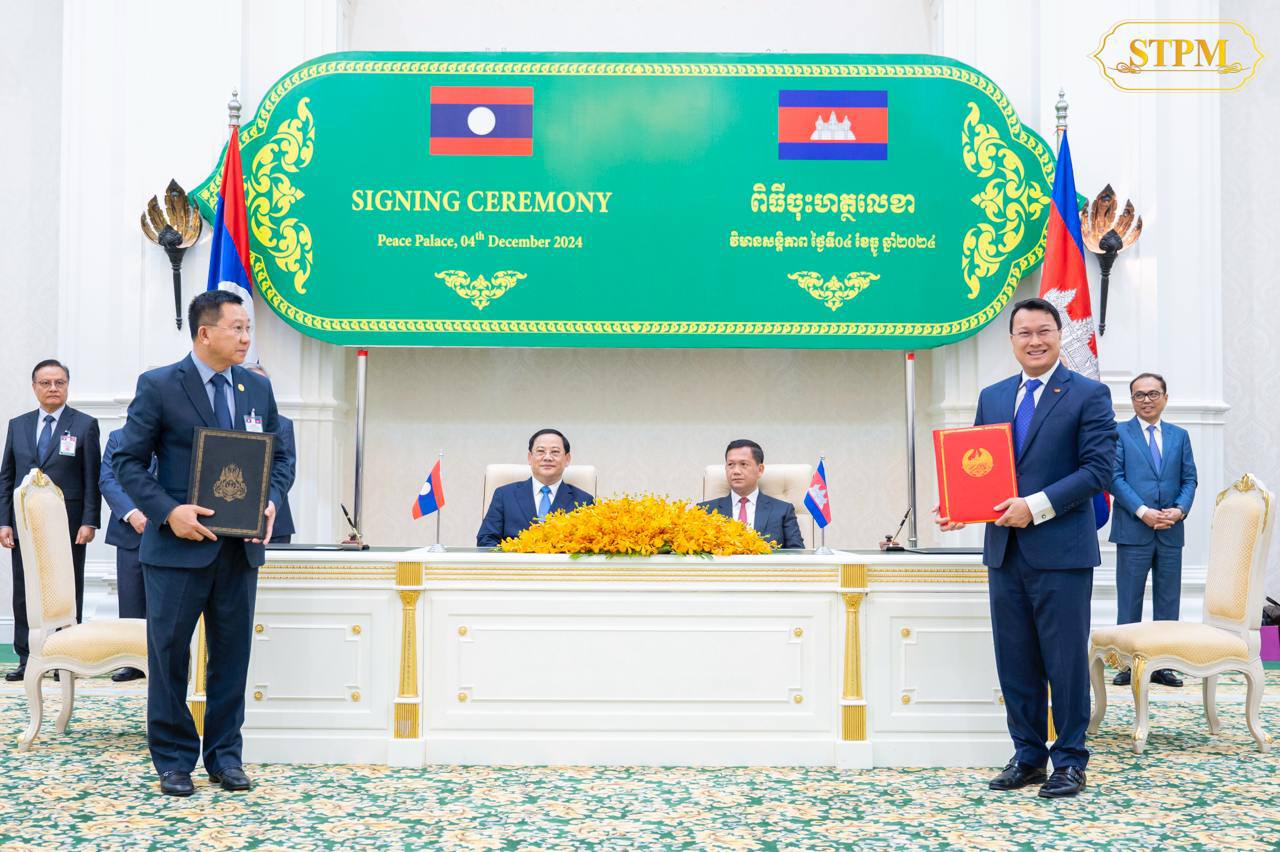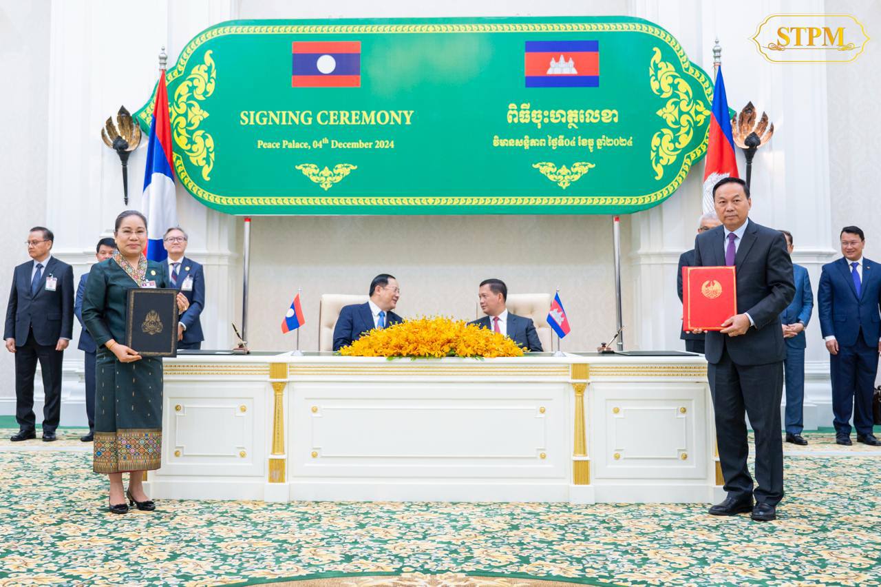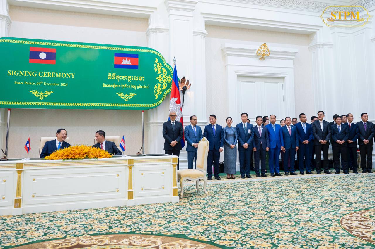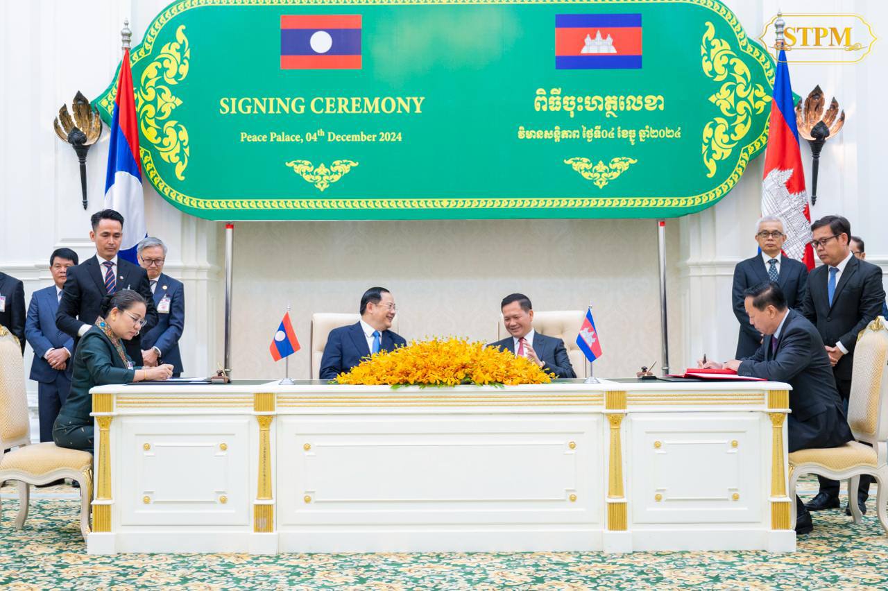 រាជធានីភ្នំពេញ៖ រសៀលថ្ងៃពុធ ទី៤ ធ្នូ ២០២៤ សម្តេចមហាបវរធិបតី ហ៊ុន ម៉ាណែត នាយករដ្ឋមន្ត្រី នៃព្រះរាជាណាចក្រកម្ពុជា អញ្ជើញចូលរួមជាអធិបតីភាពក្នុងជំនួបជាមួយ ឯកឧត្តមបណ្ឌិត សនសៃ ស៊ីផាន់ដន (Sonexay SIPHANDONE) នាយករដ្ឋមន្ត្រី នៃសាធារណរដ្ឋប្រជាធិបតេយ្យប្រជាមានិតឡាវ ក្នុងពិធីចុះអនុស្សរណៈនៃការយោគយល់គ្នារវាងរដ្ឋាភិបាលកម្ពុជា និងរដ្ឋាភិបាលនៃសាធារណរដ្ឋប្រជាធិប តេយ្យប្រជាមានិតឡាវ ចំនួនបី៖