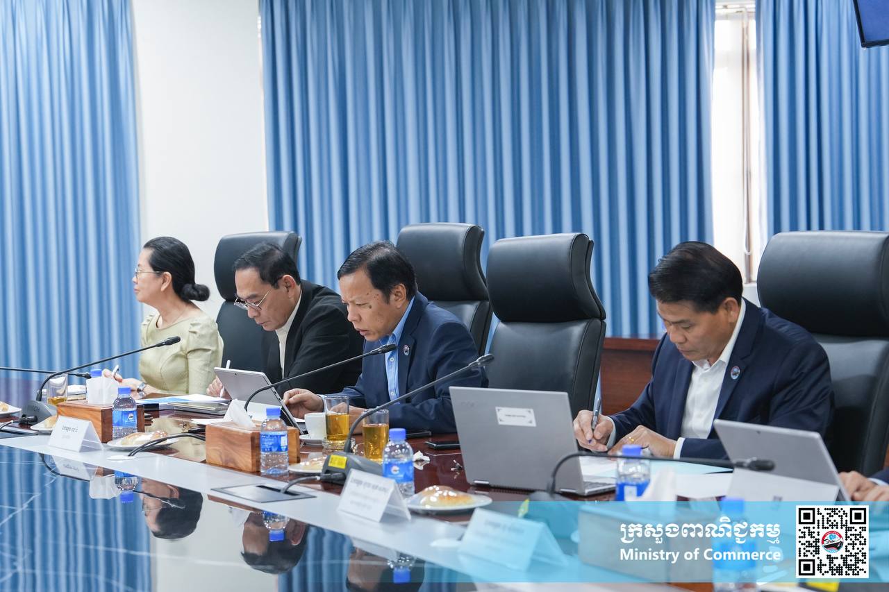 ថ្ងៃសុក្រ ទី៦ ខែធ្នូ ឆ្នាំ២០២៤ លោកជំទាវ ចម និម្មល ដឹកនាំកិច្ចប្រជុំវឌ្ឍនភាពការងារដោះស្រាយបញ្ហាប្រឈម និងសំណូមពរនានា របស់អង្គភាពក្រោមឱវាទក្រសួង និងមន្ទីរពាណិជ្ជកម្មរាជធានី-ខេត្ត និងអនុគណៈកម្មការខ្លឹមសារ និងឯកសារ សម្រាប់សន្និបាតបូកសរុបការងារពាណិជ្ជកម្មឆ្នាំ២០២៤ និងទិសដៅការងារពាណិជ្ជកម្មឆ្នាំ២០២៥ នៅទីស្ដីការក្រសួងពាណិជ្ជកម្ម។