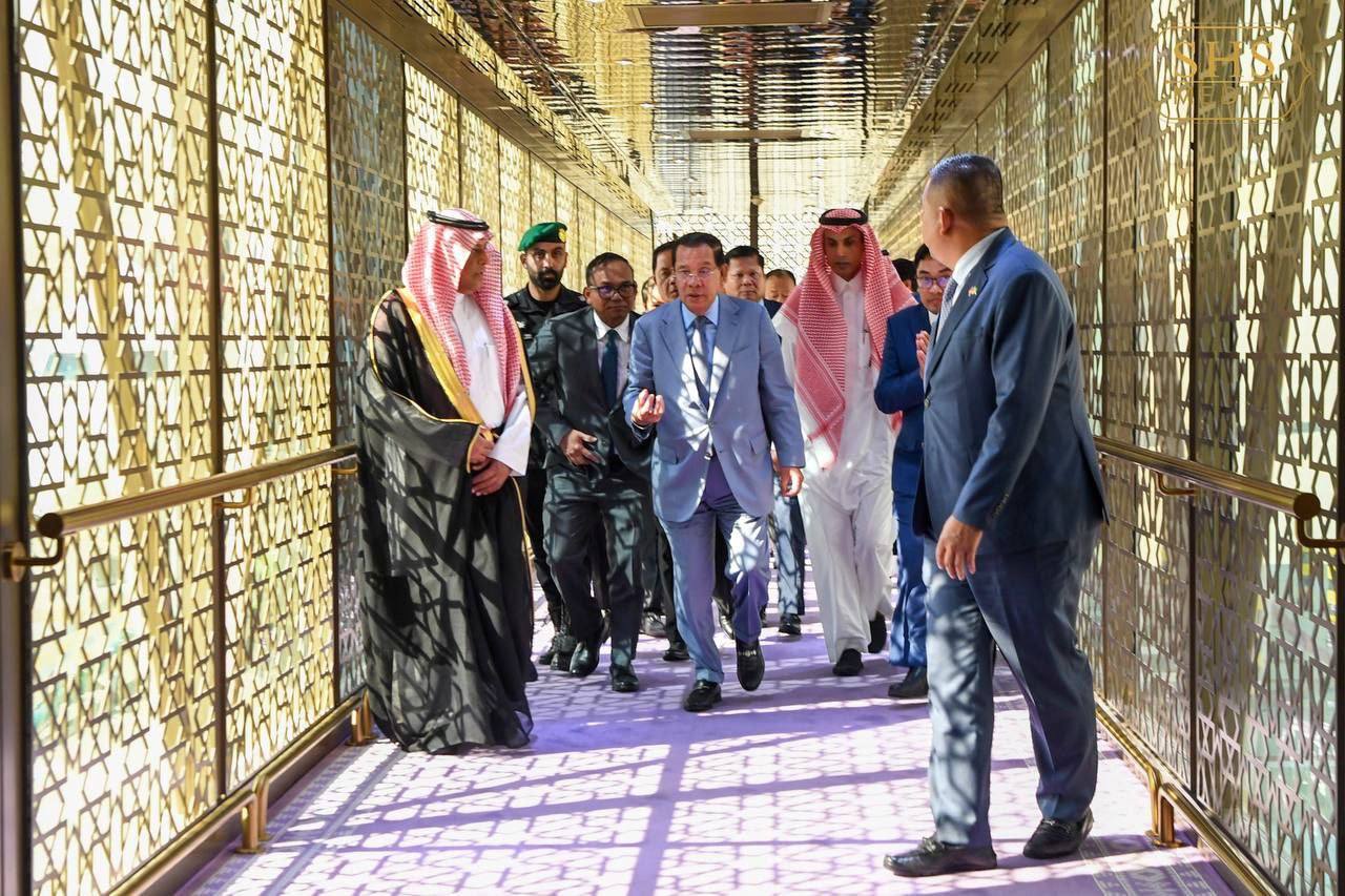 អារ៉ាប៊ីសាអូឌិត៖ ថ្ងៃទី០៨ ខែធ្នូ ឆ្នាំ២០២៤ សម្តេចអគ្គមហាសេនាបតីតេជោ ហ៊ុន សែន ប្រធានព្រឹទ្ធសភា នៃព្រះរាជា ណាចក្រកម្ពុជា និងគណៈប្រតិភូជាន់ខ្ពស់កម្ពុជា អញ្ជើញដល់រដ្ឋធានីរីយ៉ាត ព្រះរាជាណាចក្រអារ៉ាប៊ីសាអូឌិត ប្រកបដោយសុវត្ថិភាព ដើម្បីបំពេញទស្សនកិច្ចផ្លូវការរយៈពេល ១សប្តាហ៍ ទៅកាន់ប្រទេសចំនួន ៤ នៅតំបន់មជ្ឈឹមបូព៌ា និងអឺរ៉ុប ក្នុងនោះរួមមានព្រះរាជាណាចក្រអារ៉ាប៊ីសាអូឌីត រដ្ឋកាតា សាធារណរដ្ឋតួកគី និងអេមីរ៉ាត អារ៉ាប់រួម នៅម៉ោង១៦ និង២៣នាទី ម៉ោងនៅរាជធានីភ្នំពេញ នារសៀលថ្ងៃទី០៨ ខែធ្នូ ឆ្នាំ២០២៤ ដោយមានការទទួលបដិសណ្ឋារកិច្ចស្វាគមន៍យ៉ាងកក់ក្តៅបំផុត ពីឯកឧត្តមបណ្ឌិត អាប់ឌុលឡា ម៉ូហាម៉េដ អ៊ីប្រាហ៊ីម អាល់-សេក្ខ (Abdullah Muhamad Ibrahim Al-Sheikh) ប្រធានសភាព្រះរាជាណាចក្រអារ៉ាប៊ីសាអូឌីត ព្រមទាំងឯកឧត្តម លោកជំទាវ ជាឥស្សរជនជាន់ខ្ពស់សភានៃព្រះរាជាណាចក្រអារ៉ាប៊ីសាអូឌីត និងឥស្សរជនការទូតរបស់ព្រះរាជាណាចក្រកម្ពុជា ជាច្រើនរូប។
