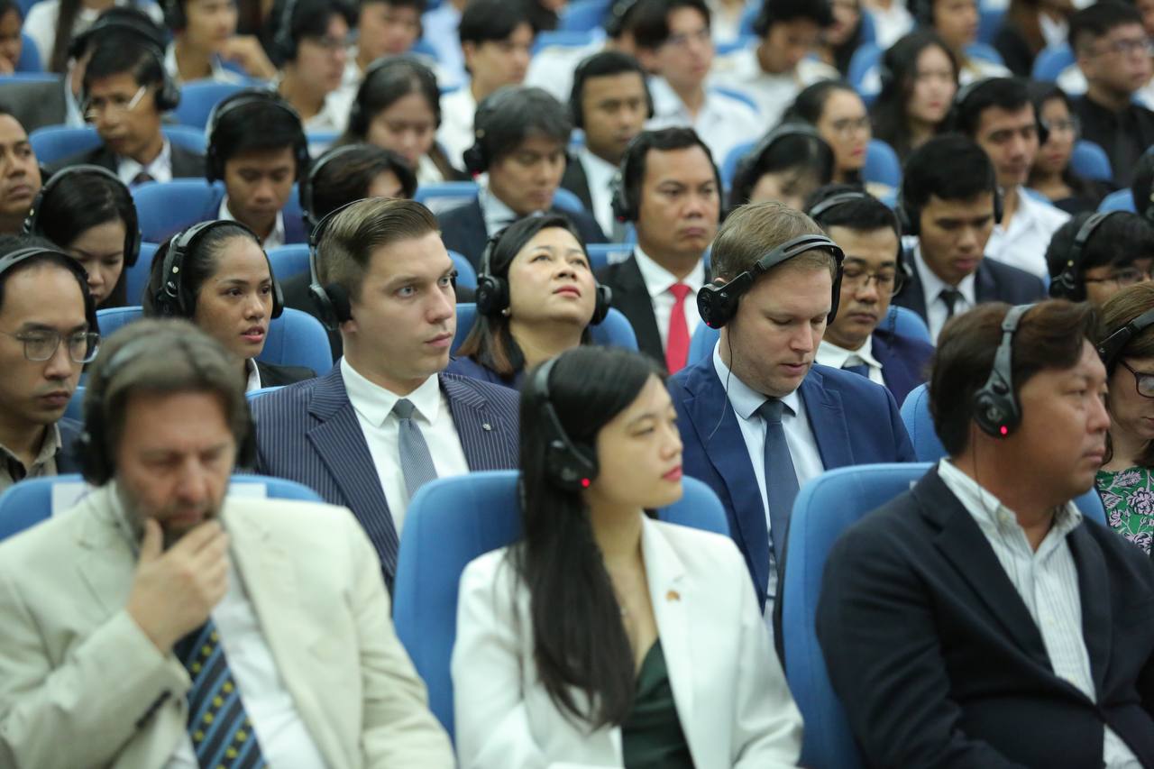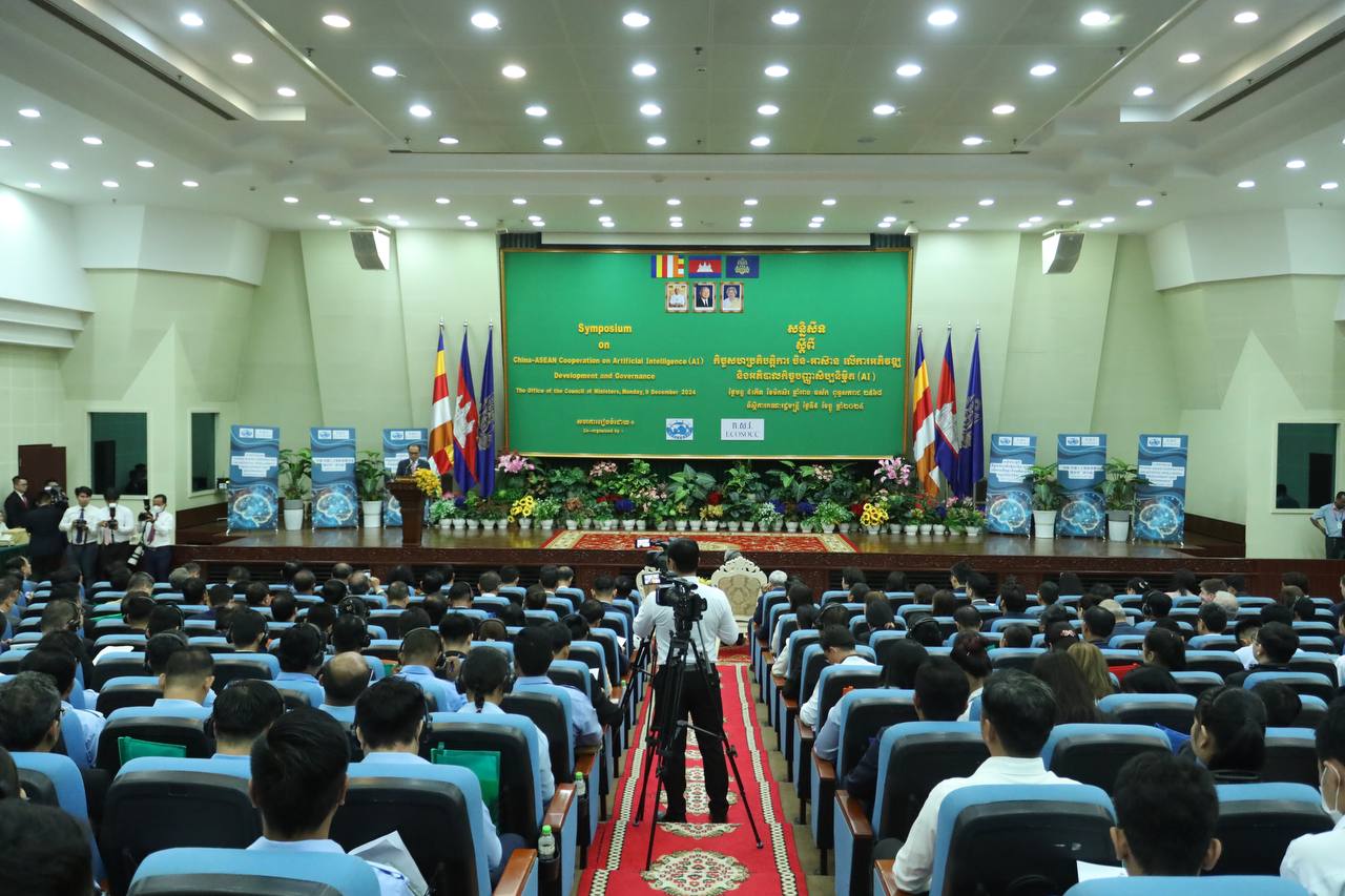 ភ្នំពេញ៖ ថ្ងៃទី០៩ ខែធ្នូ ឆ្នាំ២០២៤ ឯកឧត្តម វង្សី វិស្សុត ឧបនាយករដ្ឋមន្ត្រីប្រចាំការ រដ្ឋមន្ត្រីទទួលបន្ទុកទីស្តីការគណៈរដ្ឋមន្ត្រី និងឯកឧត្តម Wang Wenbin ឯកអគ្គរដ្ឋទូតសាធារណរដ្ឋប្រជាមានិតចិនប្រចាំនៅកម្ពុជា អញ្ជើញជាអធិបតី សិក្ខាសាលាស្តីពី "កិច្ចសហប្រតិបត្តិការចិន-អាស៊ាន លើការអភិវឌ្ឍ និងអភិបាលកិច្ចបញ្ញាសប្បនិម្មិត (AI)" ដែលរៀបចំដោយក្រុមប្រឹក្សាសេដ្ឋកិច្ច សង្គម និងវប្បធម៌ និងវិទ្យាស្ថានសិក្សាអន្តរជាតិចិន នាព្រឹកថ្ងៃទី០៩ ខែធ្នូ ឆ្នាំ២០២៤ នៅវិមានមិត្តភាព រាជធានីភ្នំពេញ។