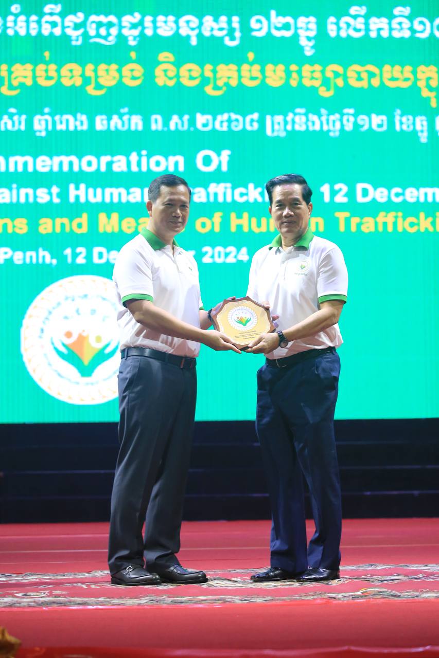 សម្តេចធិបតីនាយករដ្ឋមន្ត្រី អញ្ជើញប្រគល់ពានកិត្តិយសដល់ក្រសួង ស្ថាប័ន ដែលដឹកនាំការងារប្រយុទ្ធប្រឆាំងអំពើជួញដូរមនុស្ស