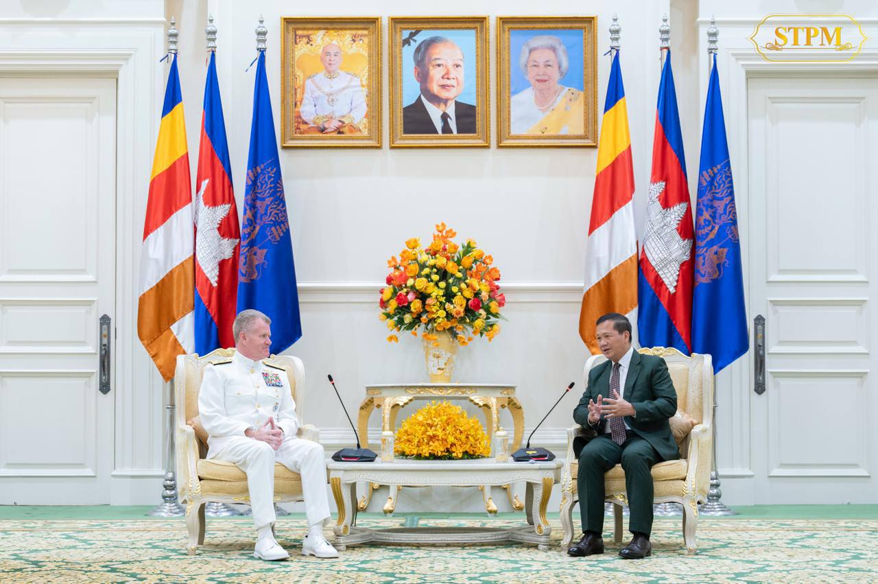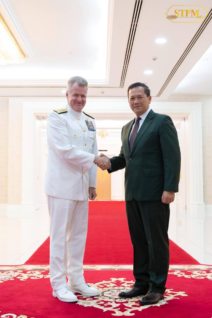 នារសៀលថ្ងៃទី១៨ ខែធ្នូ ឆ្នាំ២០២៤ សម្ដេចមហាបវរធិបតី ហ៊ុន ម៉ាណែត នាយករដ្ឋមន្ត្រីនៃព្រះរាជាណាចក្រកម្ពុជា បានអនុញ្ញាតឱ្យ នាយឧត្តមនាវី Samuel J. Paparo មេបញ្ជាការនៃបញ្ជាការដ្ឋានឥណ្ឌូប៉ាស៊ីហ្វិក នៃសហរដ្ឋអាម៉េរិក ចូលជួបសម្តែងការគួរសម និងពិភាក្សាការងារ នៅវិមានសន្តិភាព។