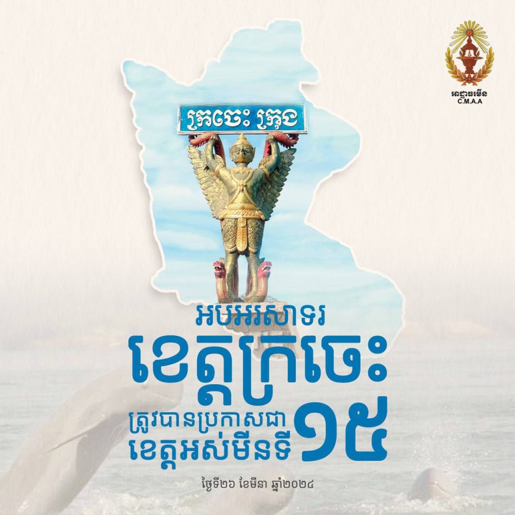 អបអរសាទរខេត្តក្រចេះ ត្រូវបានប្រកាសជាខេត្តអស់មីន នៅទូទាំងព្រះរាជាណាចក្រកម្ពុជា