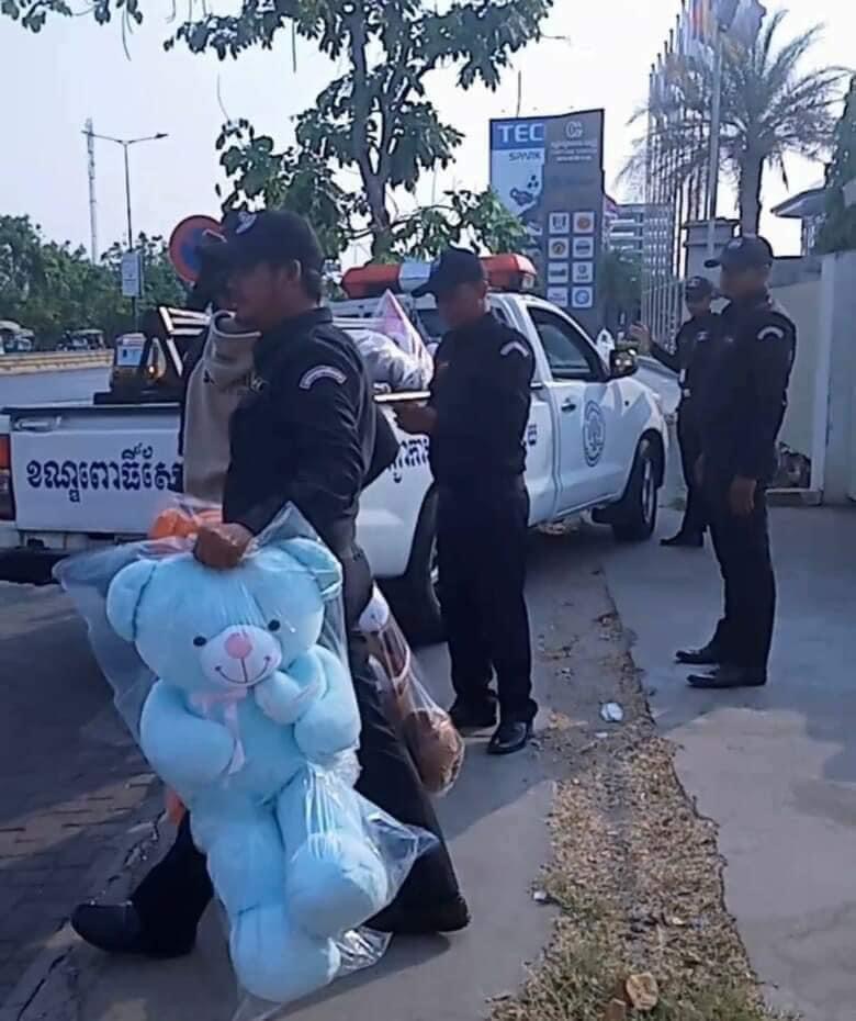 នៅក្នុងពេលសមត្ថកិច្ចខាងលើ ចាប់យកតុក្កតារបស់គាត់ ដាក់លើរថយន្ត ដឹកនាំយកទៅកាន់សាលាខណ្ឌពោធិ៍សែនជ័យ ស្ត្រីអ្នកលក់រូបនោះ បានទាញទូរសព្ទថតរូបភាពវីដេអូ ពីសកម្មភាពនោះ។ ត្រូវបានកម្លាំងសណ្ដាប់ធ្នាប់សាលាខណ្ឌពោធិ៍សែនជ័យ ប្រាប់មិនឲ្យគាត់ថតទេ ប៉ុន្តែគាត់នៅតែថត និងបាននិយាយថា ខ្ញុំថតរូបទុក ខ្លាចបាត់តុក្កតារបស់ខ្ញុំ ហើយបើបាត់តុក្កតារបស់ខ្ញុំ តើគិតយ៉ាងម៉េច ? ហើយសមត្ថកិច្ចថា ការដាក់លក់លើចញ្ចើមផ្លូវបែបនេះគឺខុស ។