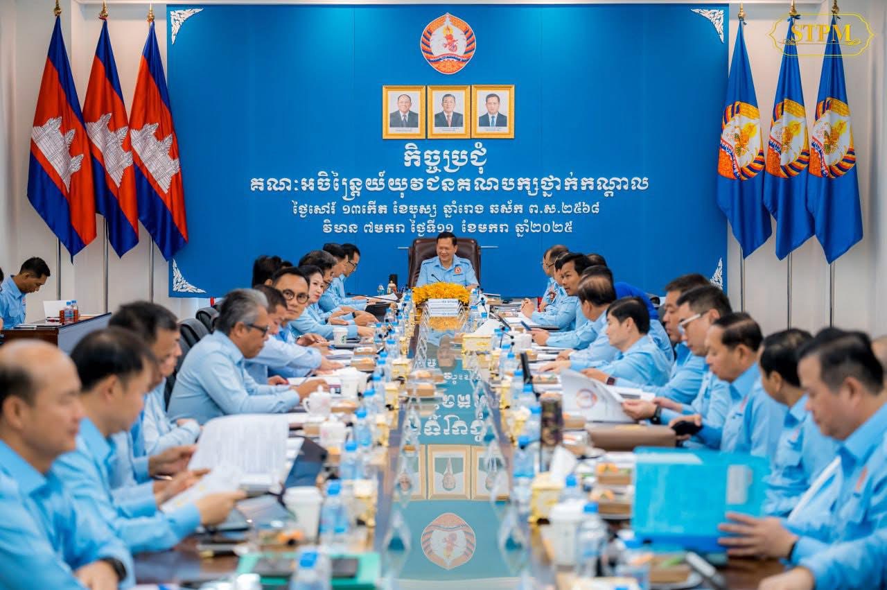 ភ្នំពេញ៖ ថ្ងៃទី១១ ខែមករា ឆ្នាំ២០២៥ សម្តេចមហាបវរធិបតី ហ៊ុន ម៉ាណែត នាយករដ្ឋមន្ដ្រី នៃព្រះរាជាណាចក្រកម្ពុជា អនុប្រធានគណបក្សប្រជាជនកម្ពុជា និងជាប្រធានយុវជនគណបក្សថ្នាក់កណ្តាល អញ្ជើញដឹកនាំកិច្ចប្រជុំគណៈអចិន្ត្រៃយ៍នៃក្រុមការងារយុវជនគណបក្សថ្នាក់កណ្តាល នៅវិមាន ៧មករា រាជធានីភ្នំពេញ នាព្រឹកថ្ងៃទី១១ ខែមករា ឆ្នាំ២០២៥។