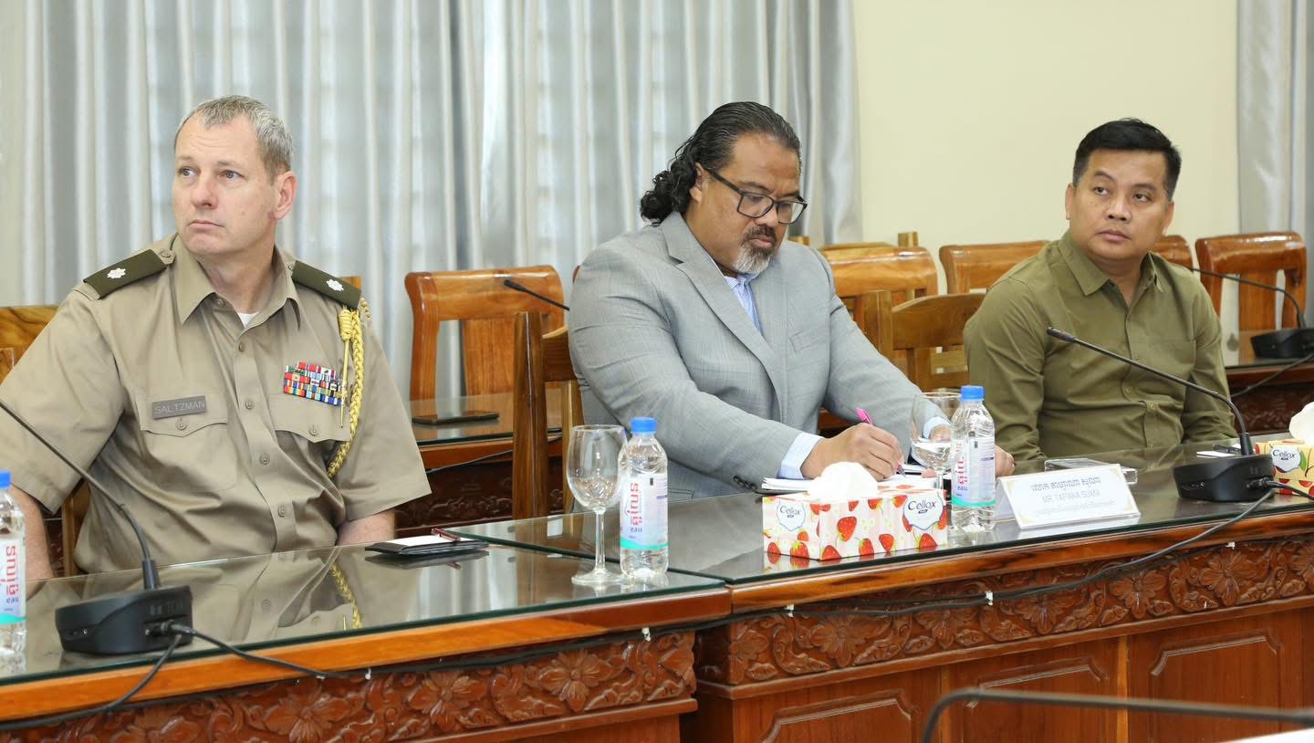 នៅព្រឹកថ្ងៃអង្គារ ១រោច ខែបុស្ស ឆ្នាំរោង ឆស័ក ព.ស២៥៦៧ ត្រូវនឹងថ្ងៃទី១៤ ខែមករា ឆ្នាំ២០២៥ ឯកឧត្តម ឧត្តមសេនីយ៍ឯក អ៊ុច វ៉ាន់ថា មេបញ្ជាការរងកងទ័ពជេីងគោក មេបញ្ជាការវិស្វកម្ម និងជាអនុប្រធានអចិន្ត្រៃយ៍ គណកម្មការគ្រប់គ្រងសកម្មភាពបោសម្អាតមីន យុទ្ធភណ្ឌមិនទាន់ផ្ទុះ សំណល់ជាតិផ្ទះពីសង្គ្រាម បានអនុញ្ញាតិឱ្យ ក្រុមការងារផ្នែកដោះមីន នៃបញ្ជាការដ្ឋានឥណ្ឌូប៉ាស៊ីហ្វិក អាមេរិក ដឹកនាំដោយវរសេនីយ៍ទោ Kyle Saltzman អនុព័ន្ធយោធាអាមេរិកថ្មីប្រចាំកម្ពុជា ចូលជួបសម្តែងការគួរសម នៅទីបញ្ជាការ បញ្ជាការដ្ឋាន វិស្វកម្ម។