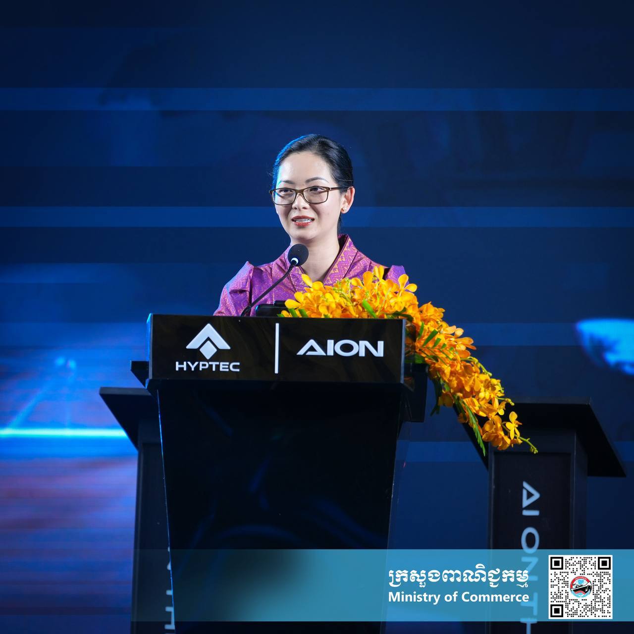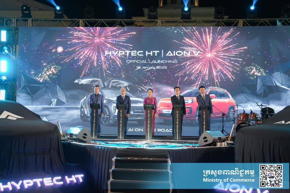 លោកជំទាវរដ្ឋមន្ត្រី ចម និម្មល អញ្ជើញជាអធិបតីក្នុងពិធីសម្ពោធដាក់លក់ជាផ្លូវការរថយន្តអគ្គិសនីទំនើបម៉ាក AION V និង HYPTEC HT ដោយក្រុមហ៊ុន H.H AUTO PRESTIGE CO., LTD