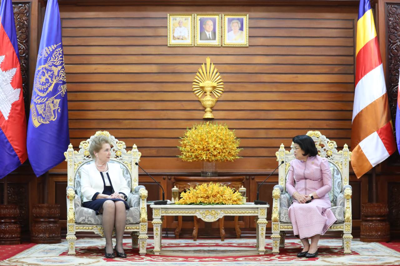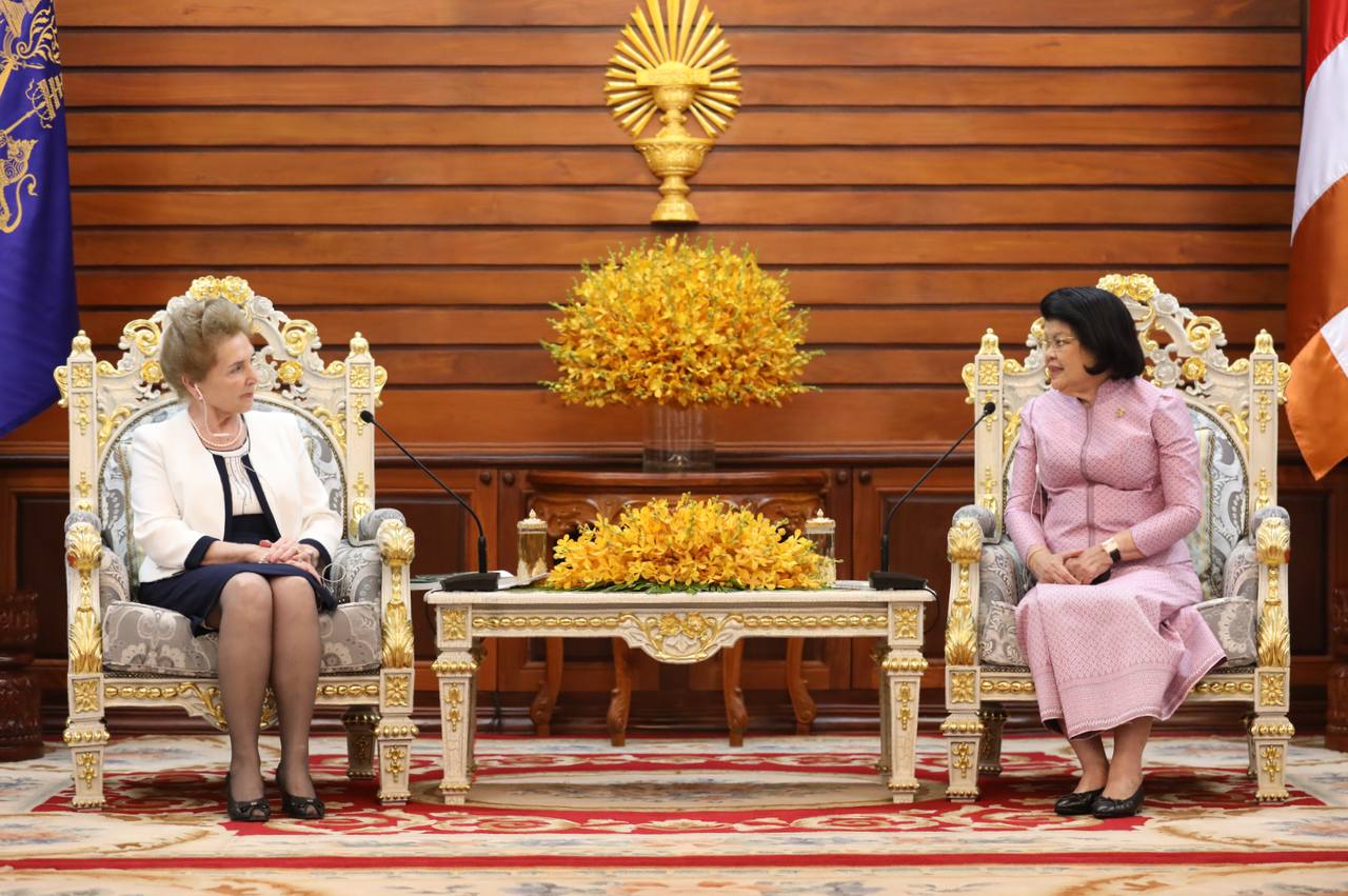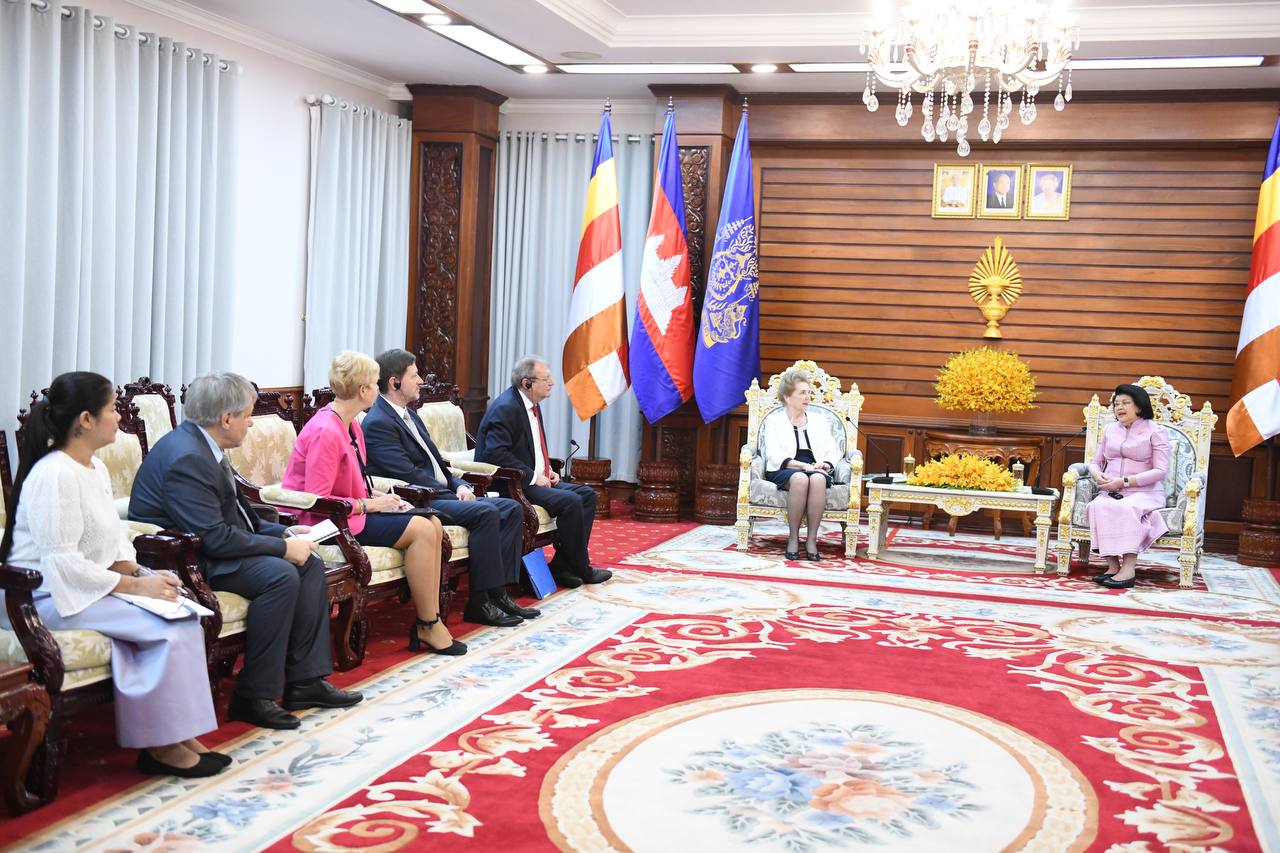 ភ្នំពេញ៖ ថ្ងៃទី០៦ ខែកុម្ភៈ ឆ្នាំ២០២៥ សម្ដេចមហារដ្ឋសភាធិការធិបតី ឃួន សុដារី ប្រធានរដ្ឋសភានៃព្រះរាជាណាចក្រកម្ពុជា អនុញ្ញាតជូនលោកជំទាវ Marta Matrai អនុប្រធានទី១ រដ្ឋសភា នៃប្រទេសហុងគ្រី ចូលជួបសម្តែងការគួរសម និងពិភាក្សាការងារ នៅវិមានរដ្ឋសភា រាជធានីភ្នំពេញ នាព្រឹកថ្ងៃទី០៦ ខែកុម្ភៈ ឆ្នាំ២០២៥ ខណៈលោកជំទាវអញ្ជើញមកបំពេញទស្សនកិច្ចផ្លូវការនៅព្រះរាជាណាចក្រកម្ពុជា។