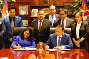 នៅរសៀលថ្ងៃទី១២ ខែកុម្ភៈ ឆ្នាំ២០២៥ ឯកឧត្តម នេត្រ ភក្ត្រា រដ្ឋមន្ត្រីក្រសួងព័ត៌មាន អនុញ្ញាតឱ្យលោកស្រី Philomena Gnanapragasam នាយកលេខាធិការដ្ឋាន នៃវិទ្យាស្ថានអាស៊ីប៉ាស៊ីហ្វិក ដើម្បីអភិវឌ្ឍន៍ប្រព័ន្ធផ្សព្វផ្សាយ (AIBD) ចូលជួបសម្តែងការគួរសម នារសៀលថ្ងៃទី១២ ខែកុម្ភៈ ឆ្នាំ២០២៥ នៅទីស្តីការក្រសួង រាជធានីភ្នំពេញ និងចុះអនុស្សរណៈស្តីពីការរៀបចំសន្និសីទកំពូលប្រព័ន្ធផ្សព្វផ្សាយអាស៊ី (AMS) លើកទី២០ ដែលនឹងប្រព្រឹត្តទៅចាប់ពីថ្ងៃទី២០ ដល់ថ្ងៃទី២៥ ខែកក្កដា ឆ្នាំ២០២៥ខាងមុខនេះ នៅខេត្តសៀមរាប។