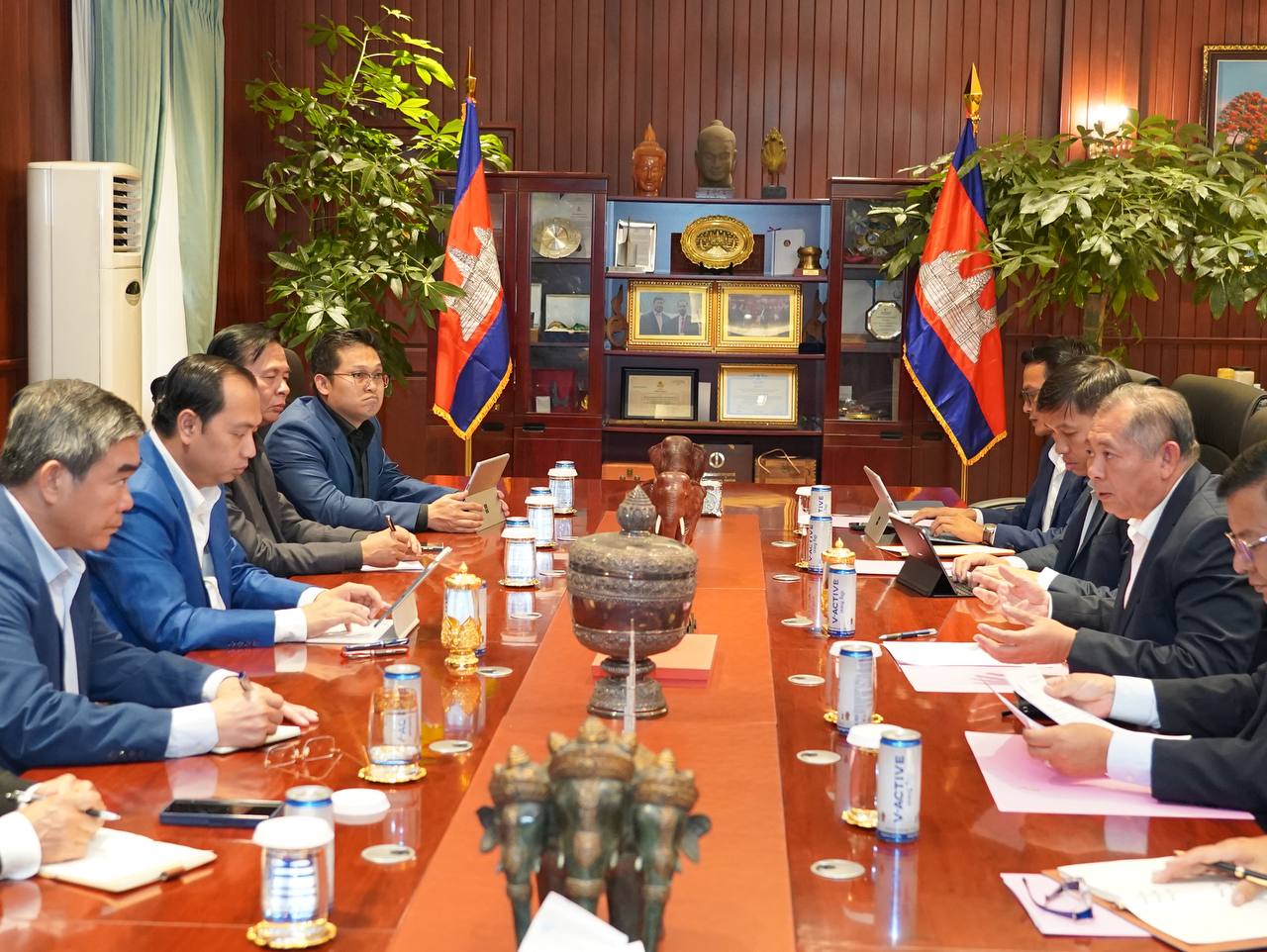 ភ្នំពេញ៖ ថ្ងៃទី១៤ ខែមីនា ឆ្នាំ២០២៥ ឯកឧត្តម នេត្រ ភក្ត្រា រដ្ឋមន្ត្រីក្រសួងព័ត៌មាន អនុញ្ញាតឱ្យប្រតិភូ សាកលវិទ្យាល័យអន្តរជាតិ (IU) ដឹកនាំដោយលោកសាស្ត្រាចារ្យមហាបរិញ្ញាបណ្ឌិត សាបូ អូហ្សាណូ សាកលវិទ្យាធិការ និងសហការី ចូលជួបសម្ដែងការគួរសម និងពិភាក្សាការងារ នារសៀលថ្ងៃទី១៤ ខែមីនា ឆ្នាំ២០២៥ នៅទីស្តីការក្រសួង រាជធានីភ្នំពេញ។